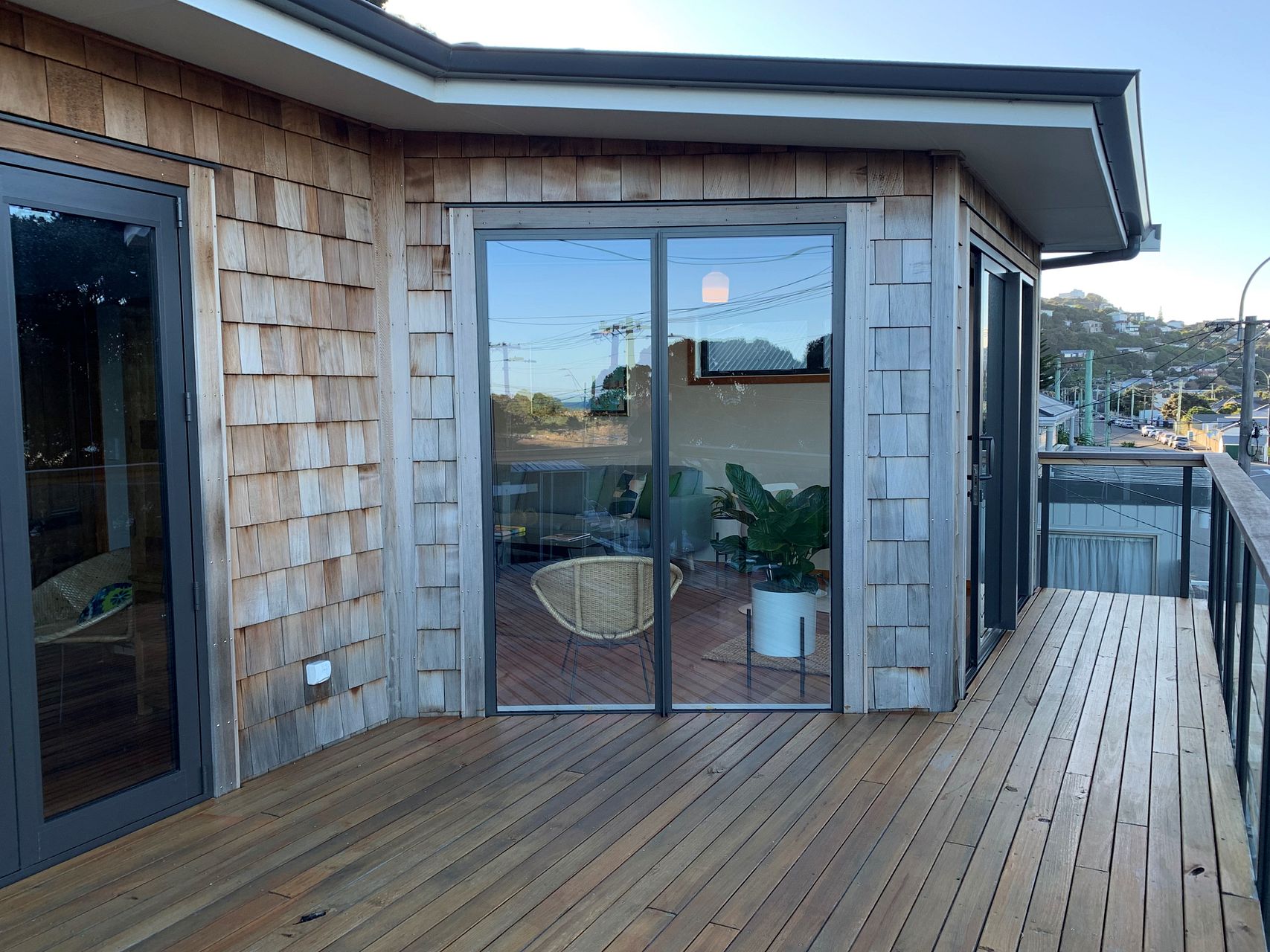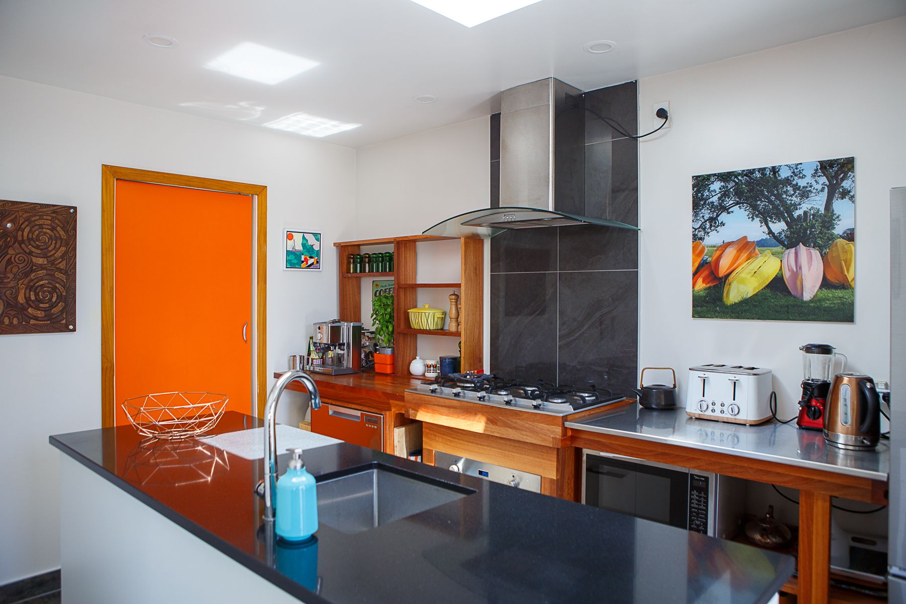 Our fully furnished seaside holiday home on the scenic south coast (and bus route), bathes in sunshine alongside and very near the picturesque Lyall Bay beach. The City Centre and Hospital are close, with shops, galleries, cafes, restaurants and bars all at walking distance. From the more rustic upper landing you can enjoy wow factor views across the entire beach, over our Airport and out to the Cook Strait.