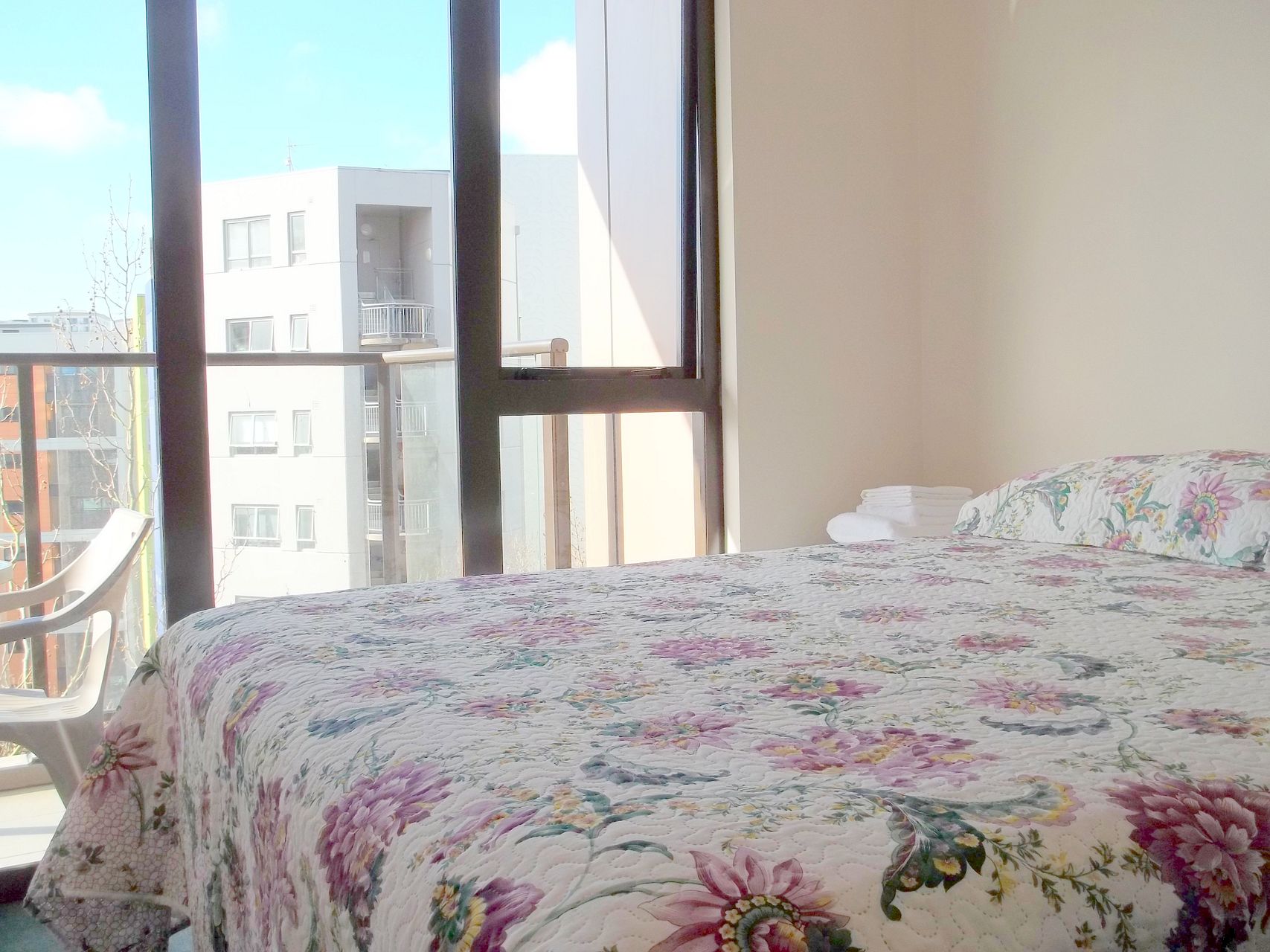 2 double bedrooms and 1 bathroom with washing machine and dryer.