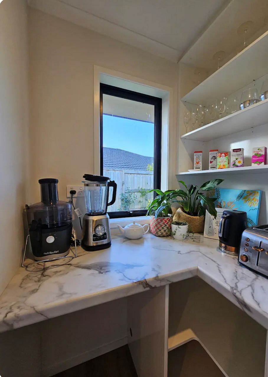 Fully-fenced backyard. Home is fully-furnished, bring your own soft furnishings e.g. bedding and towels.