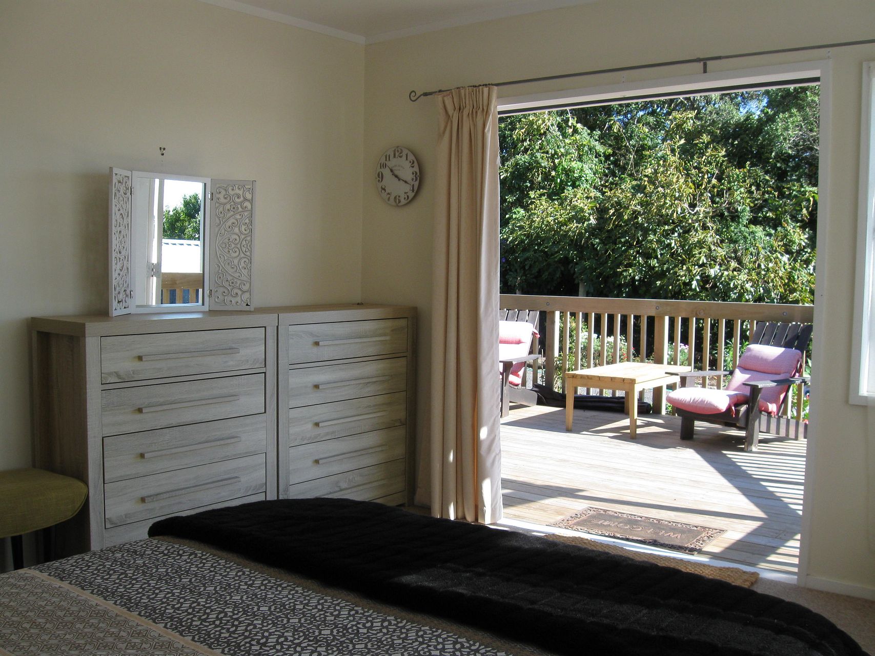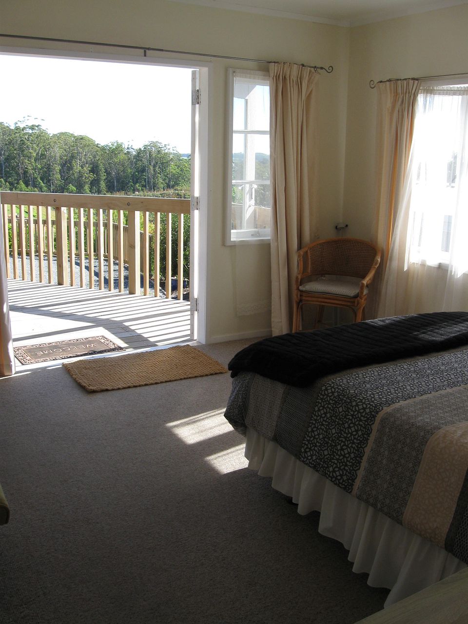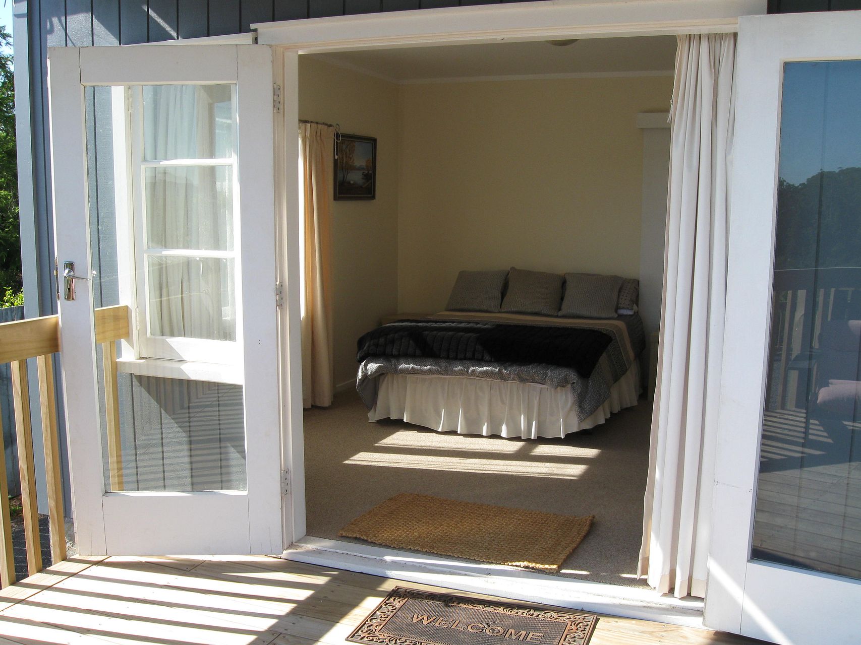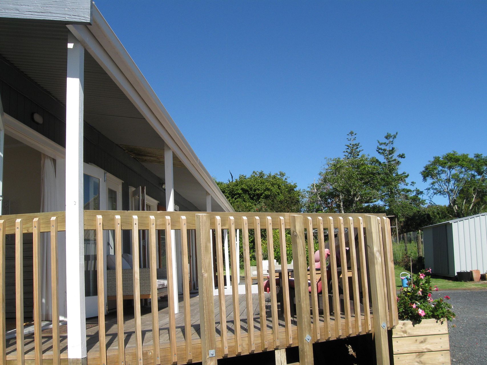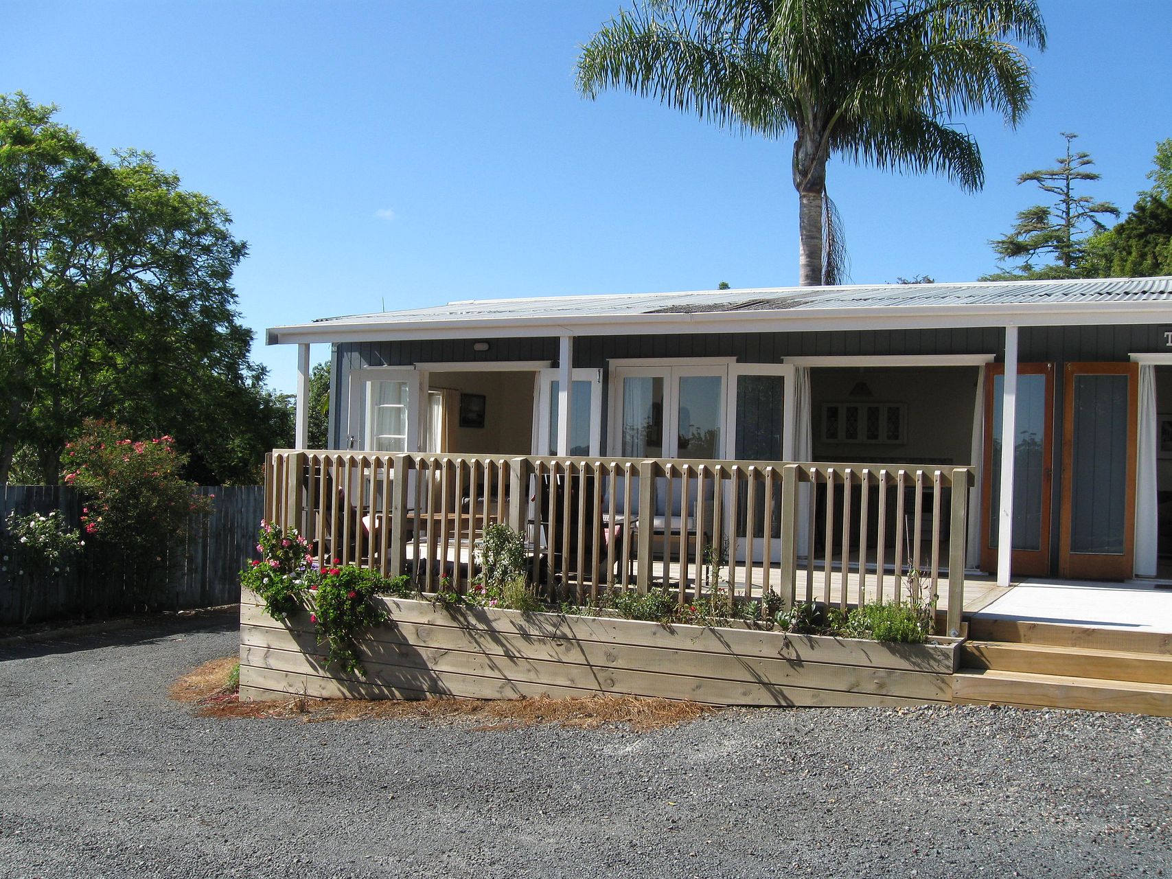 The 2 bedroom home has a very large north facing deck and tranquil outlook from all rooms. Off street parking for 2 cars. Lawns, gardens and water are included in the rental.