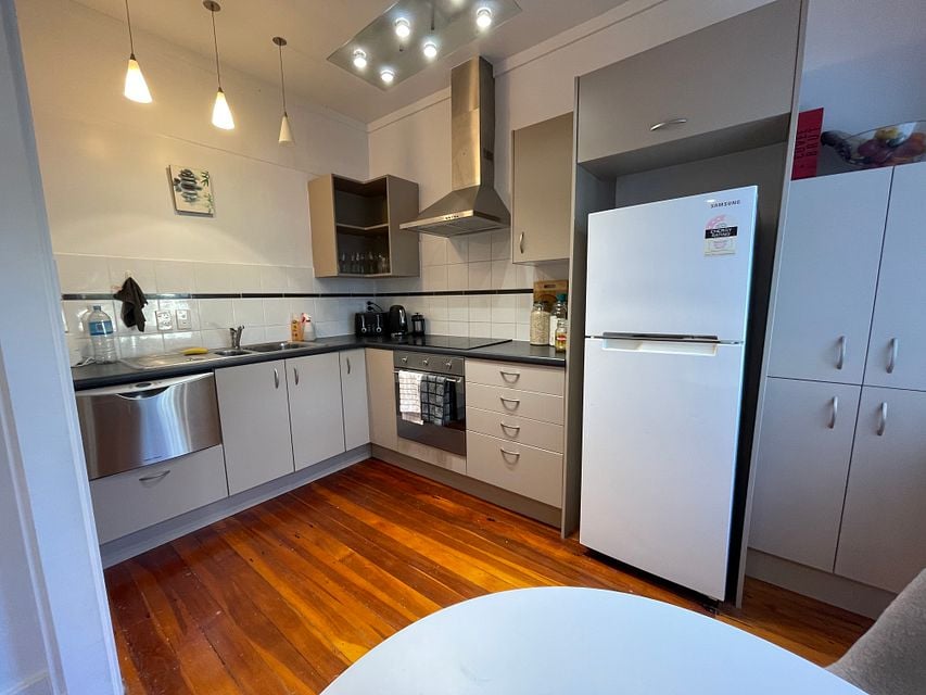 This well-presented second-level apartment offers character and space, featuring high ceilings and polished wooden floors throughout.The home includes an open-plan kitchen and lounge area, with bi-fold doors opening onto a small balcony overlooking the front of the building – perfect for enjoying fresh air and natural light.
