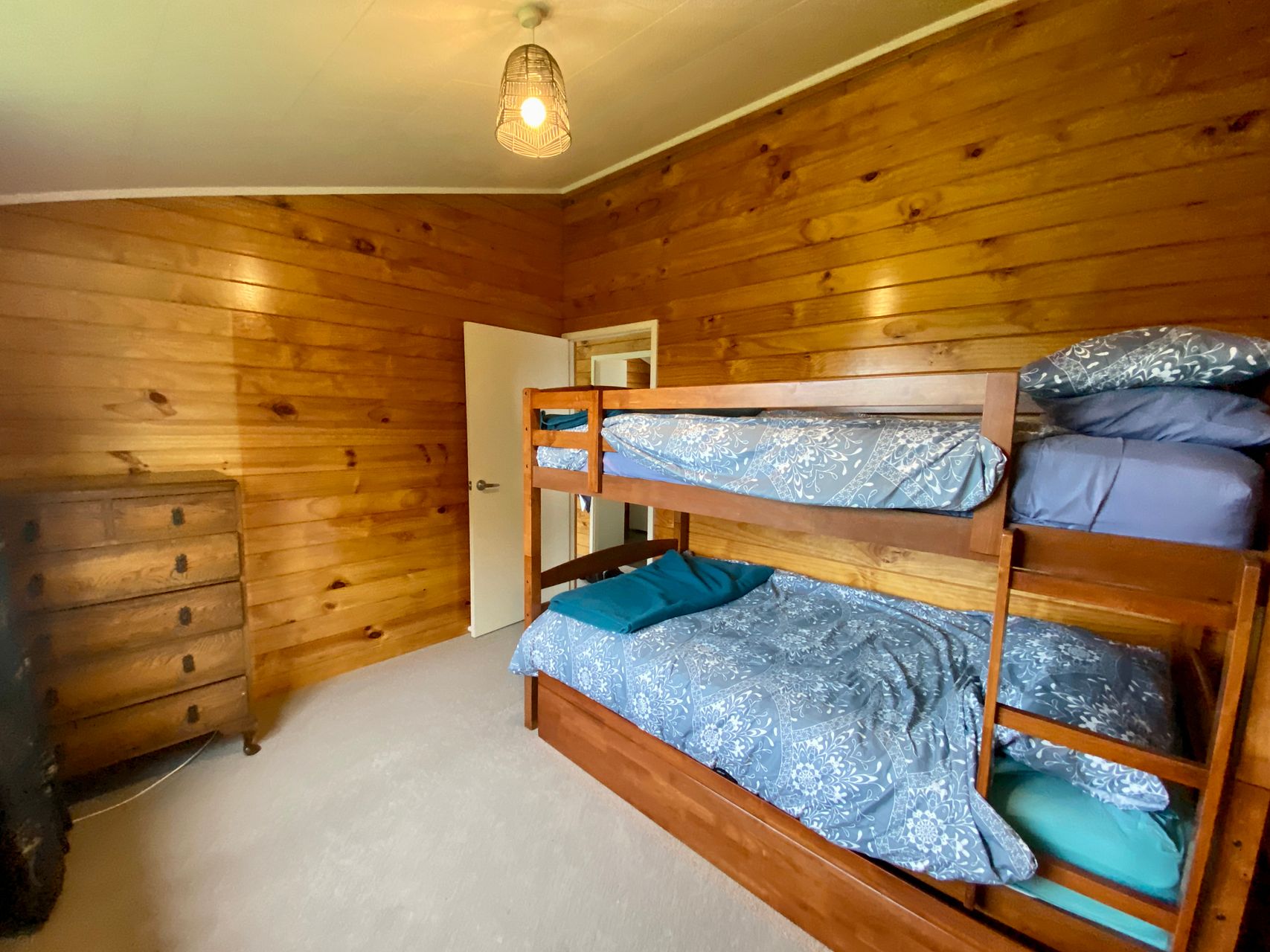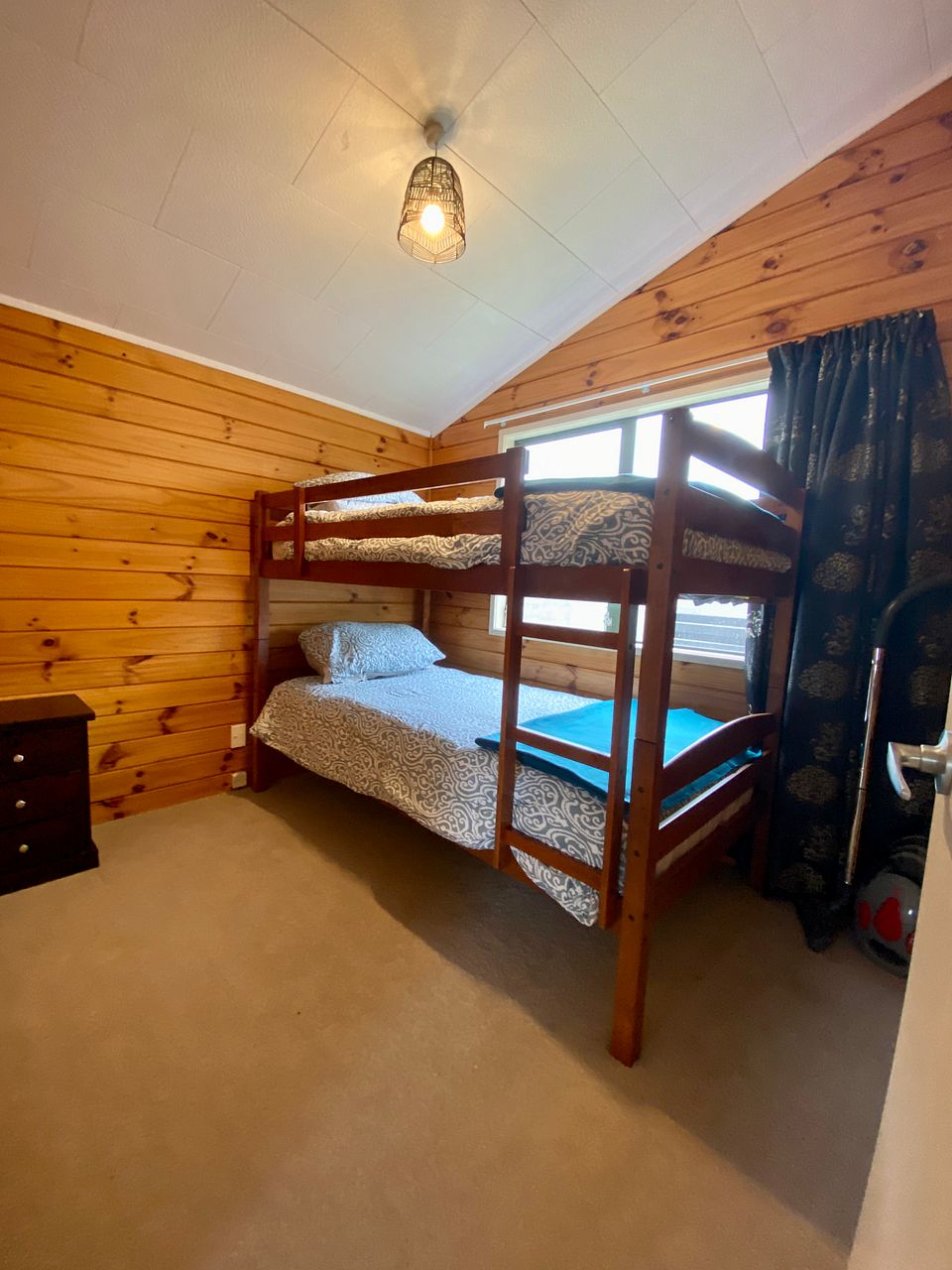 Main with queen been and king single bunk in 2nd bedroom.