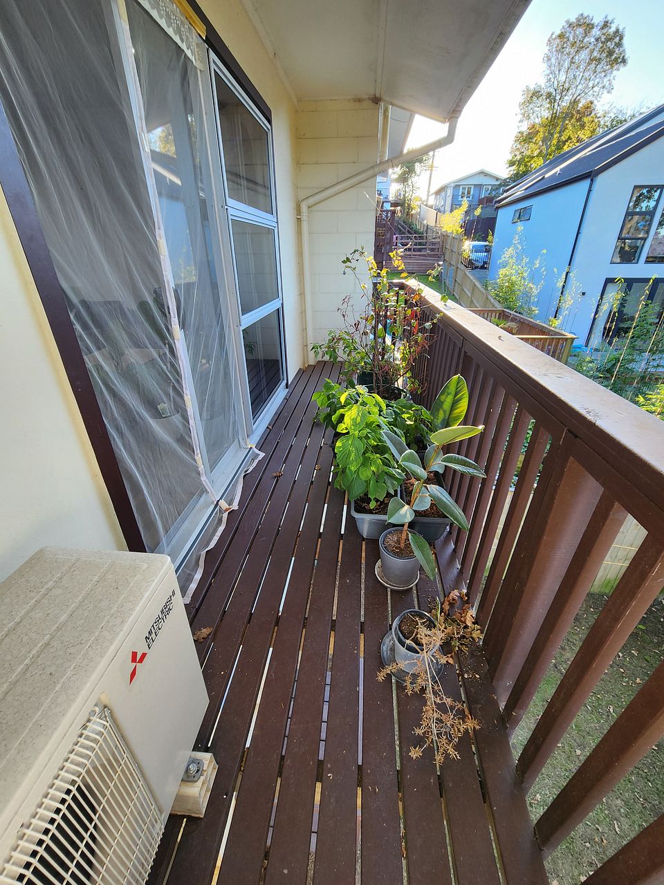 Upstairs - 1 double bedroom bathroom with separate toilet, bath. Lounge, dining, kitchen open plan and deck.