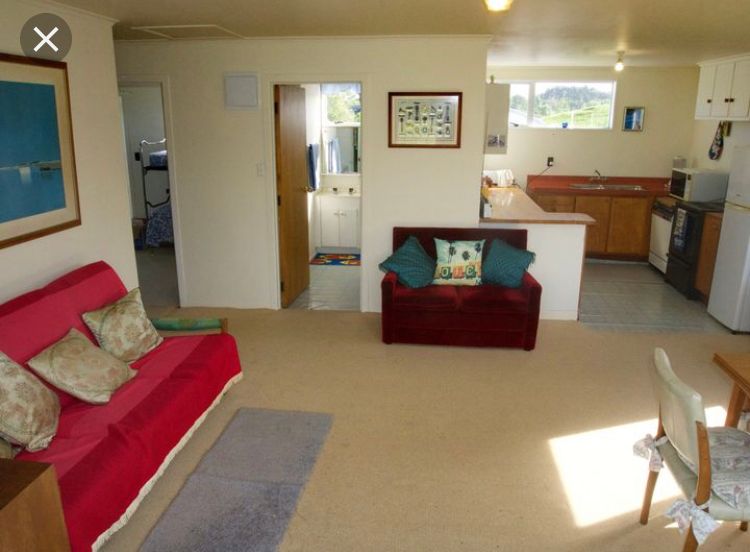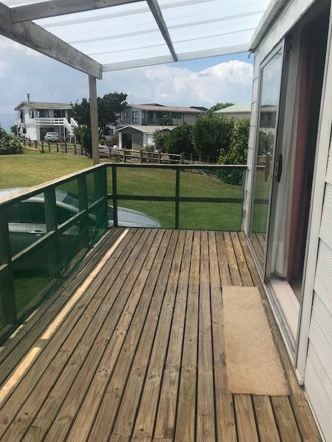 The house is just behind our seafront bach. Has seaview from the deck and less than a minute walk for a nice swim.