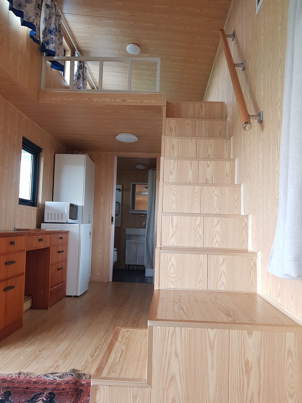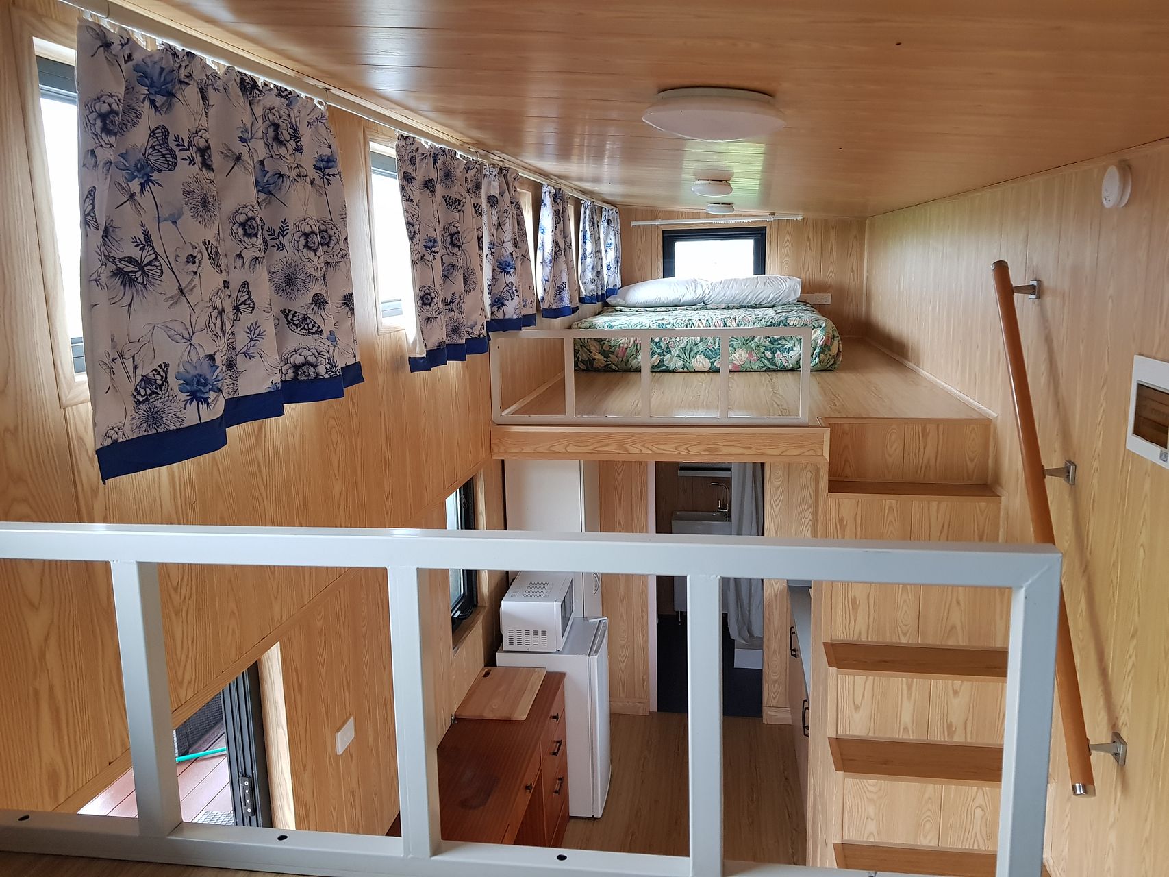 Sleeping: 1 mezzanine bed platform with 1 double mattress.