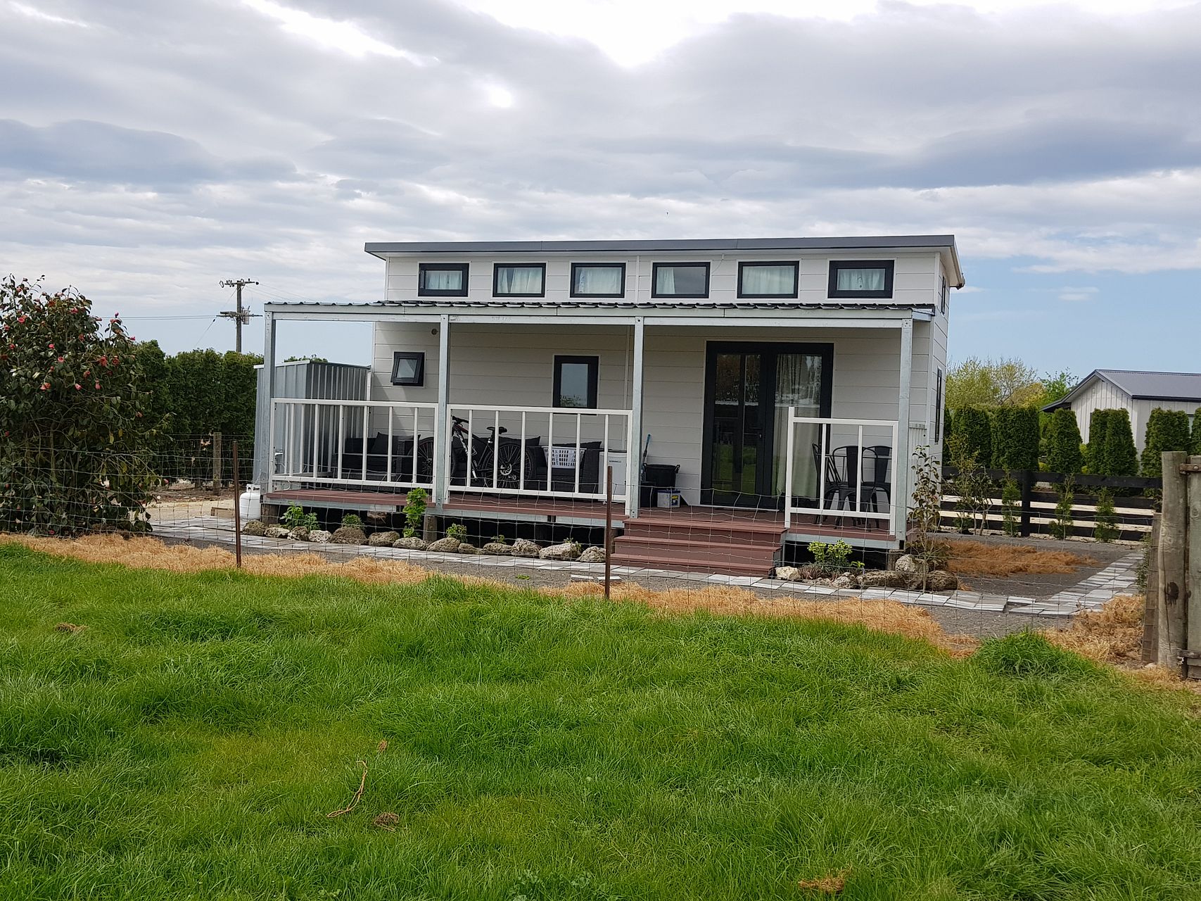 This is a newish tinyhome located 7 mins south of Hastings. A quiet country location. It is suitable for 1 or 2 adults only as it is not fenced and on a working farm with many hazards. Definitely no pets. It is currently partly furnished (you can bring stuff you own if you like).