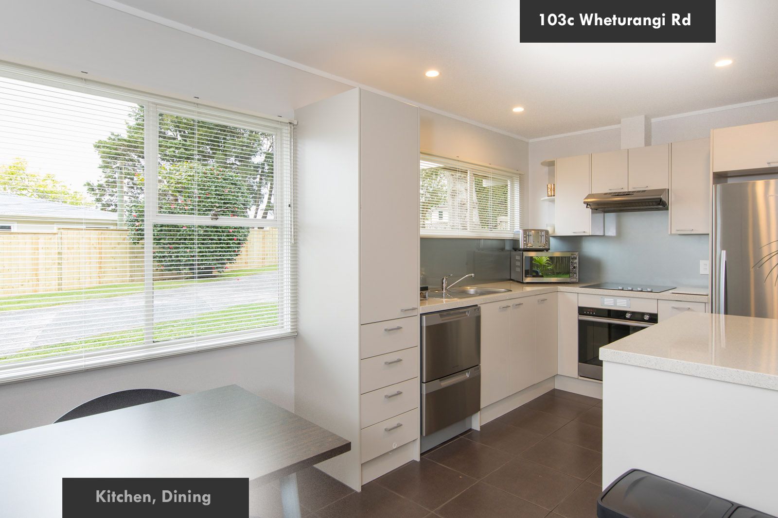 Kitchen has plenty of benchtop and storage space, dishwasher, ceramic cooktop with range hood and stove. Large fridge/freezer included.