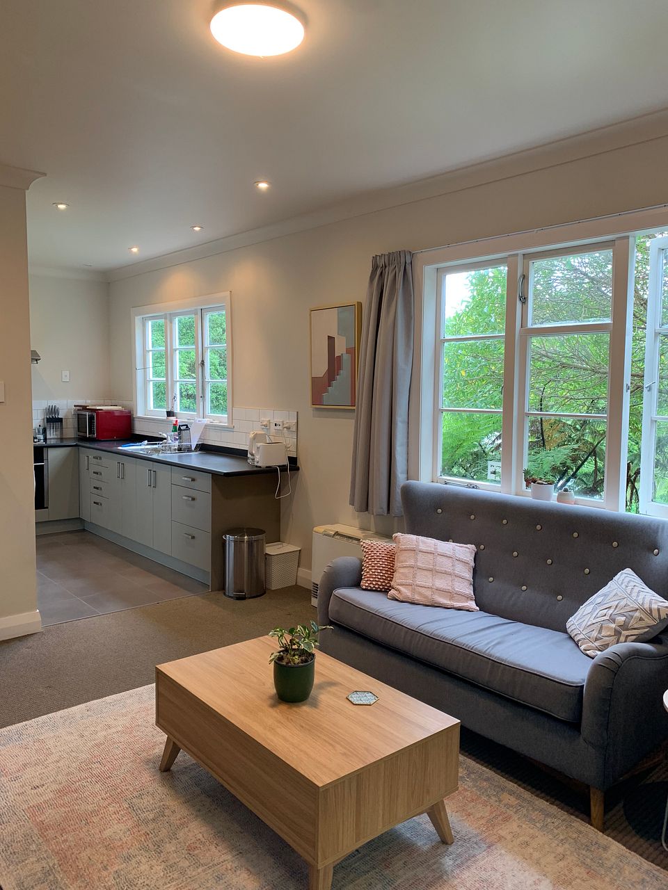 This tidy little flat is a few minutes walk from... pretty much everything..! Victoria University is literally a stone's throw away..! The schools, restaurants, parks, shops, walks, churches, you name it. The bus stand is around the corner too. Up a few stairs from Adams Terrace, this house is nicely nestled in the midst of the lovely Polhill Reserve.