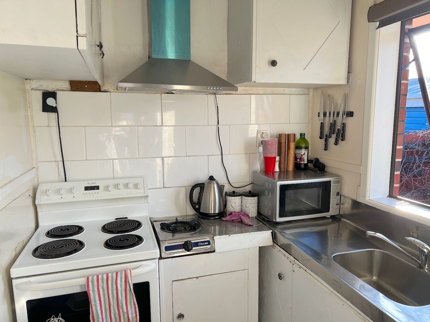 The kitchen is compact.