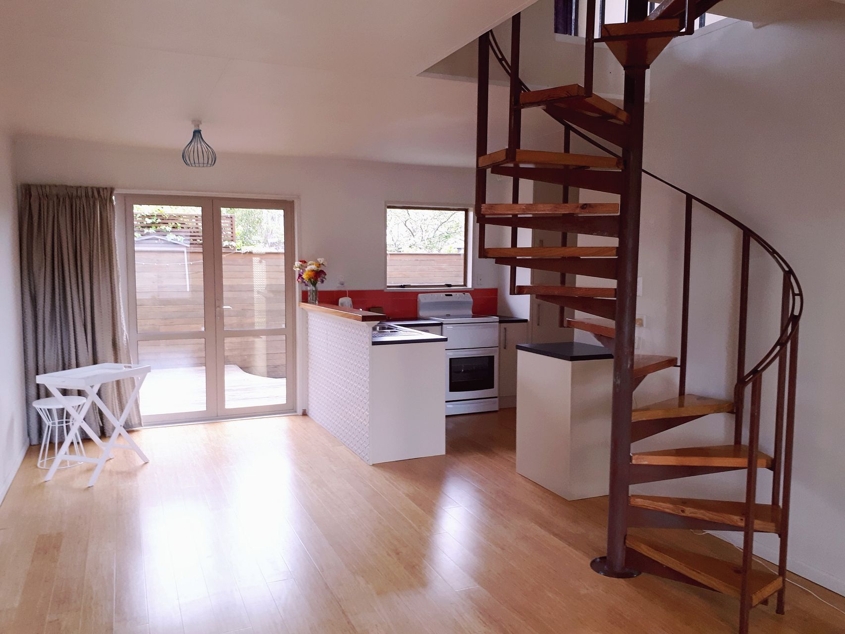 * Feature spiral staircase to upstairs space and bedrooms