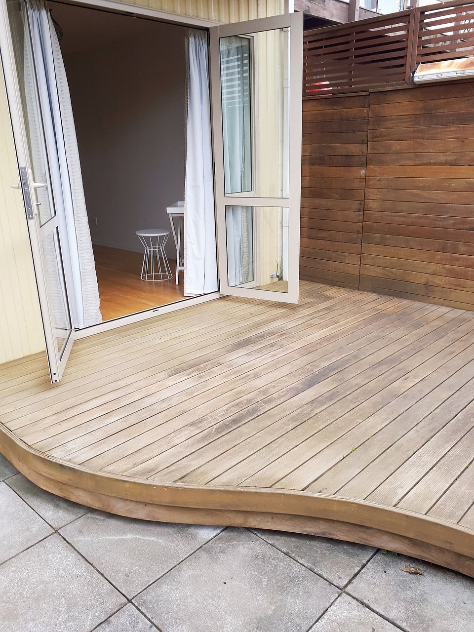 *open-plan lounge/dining that extends to a decked and paved private courtyard