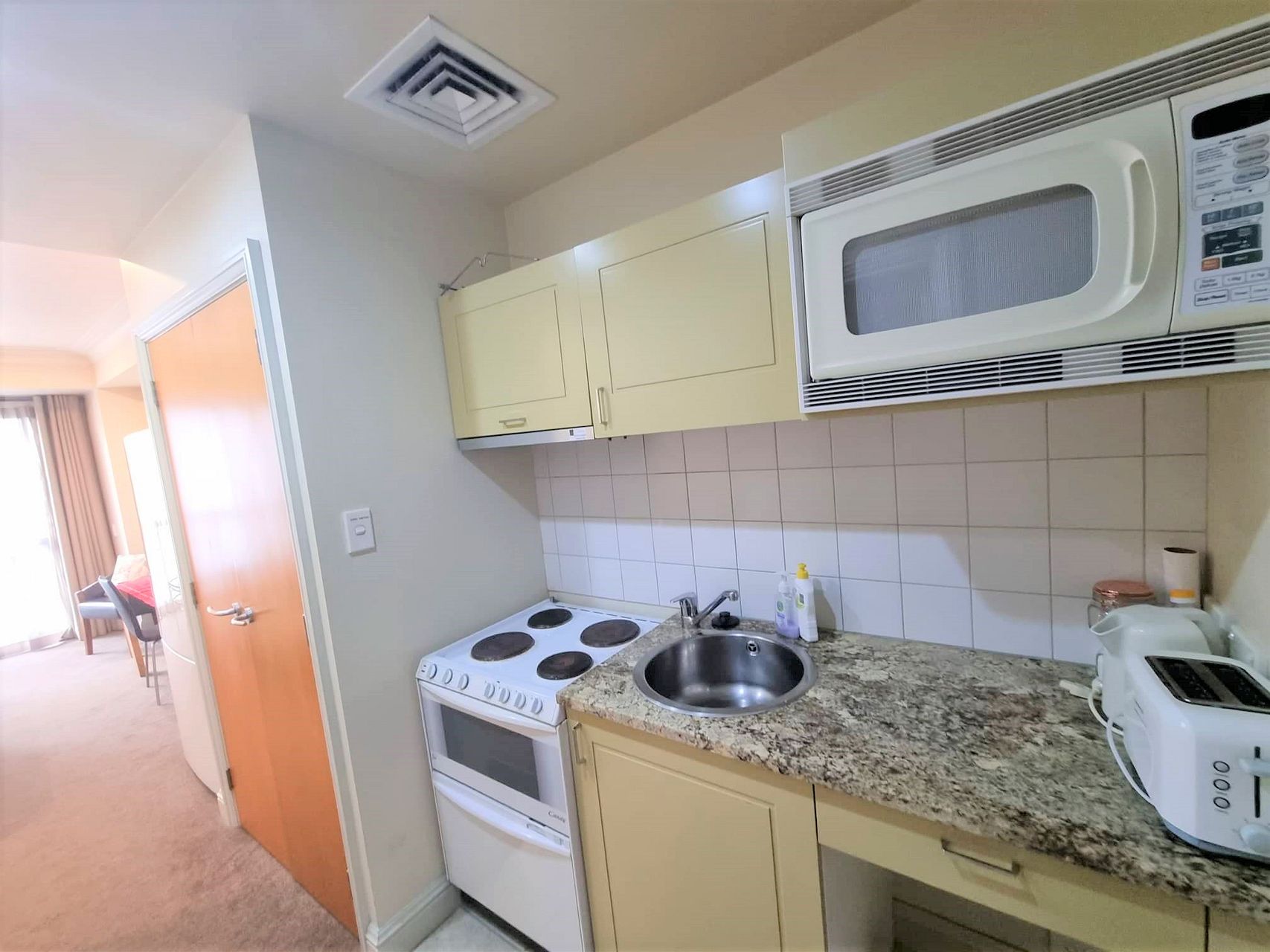 An ideal inner city pad, this apartment has its own kitchen, full size fridge/freezer, washing machine & dryer.