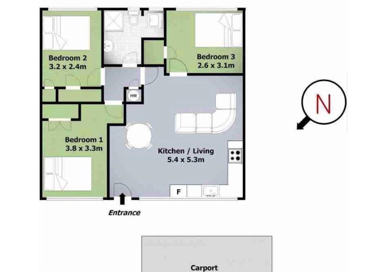 Conveniently located ground floor unit offering three bedrooms, one modern bathroom, open plan lounge and modern kitchen.