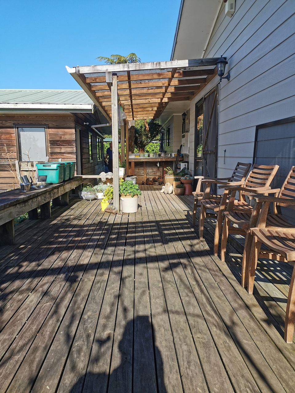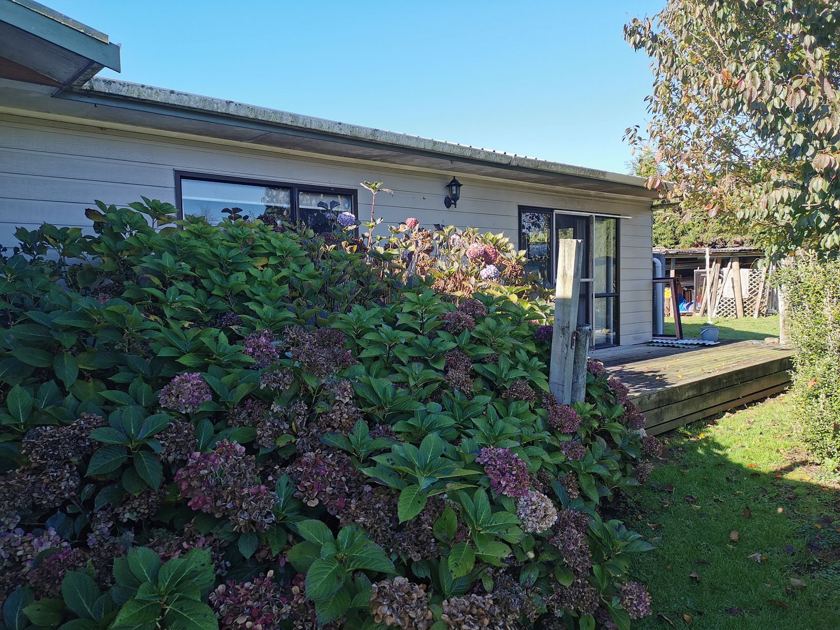 The property's private position is complemented by established fruit trees, a gardening shed, and thoughtful landscaping, offering a serene retreat within the bustling community. The practicality extends to the inclusion of a dishwasher, firewood storage sheds, and the convenience of town water supply. The expansive sunny garage and concrete hardstand area provide additional space for activities or storage. Whether you're an avid gardener or simply enjoy outdoor living, the extensive decking and garden spaces provide the perfect setting for relaxing and entertaining.
