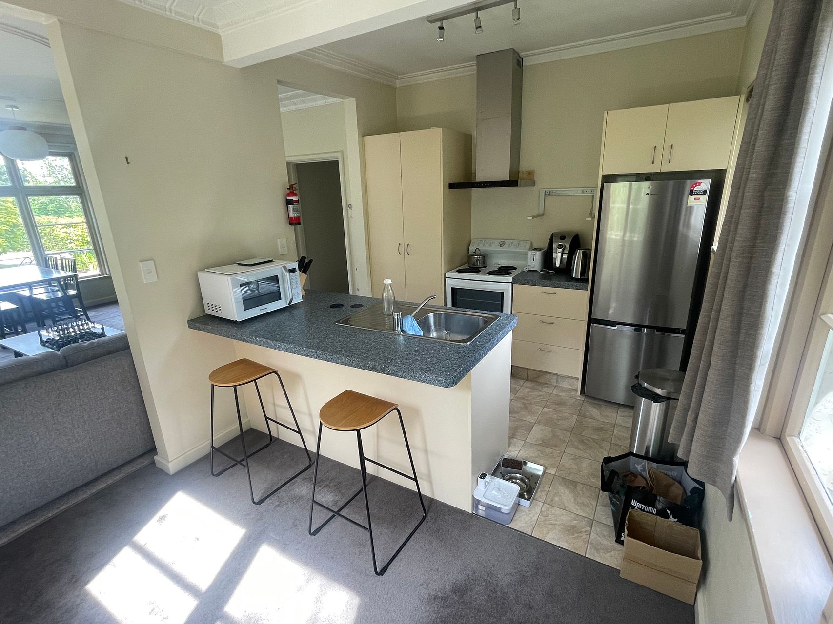 The apartment has a warm inviting feel, with a large kitchen (extra fridge and cupboard space coming soon!) and a well-designed living area that soaks up the sun all day. It’s a great balance of discretion and social space, perfect for people who enjoy a peaceful yet productive home environment.