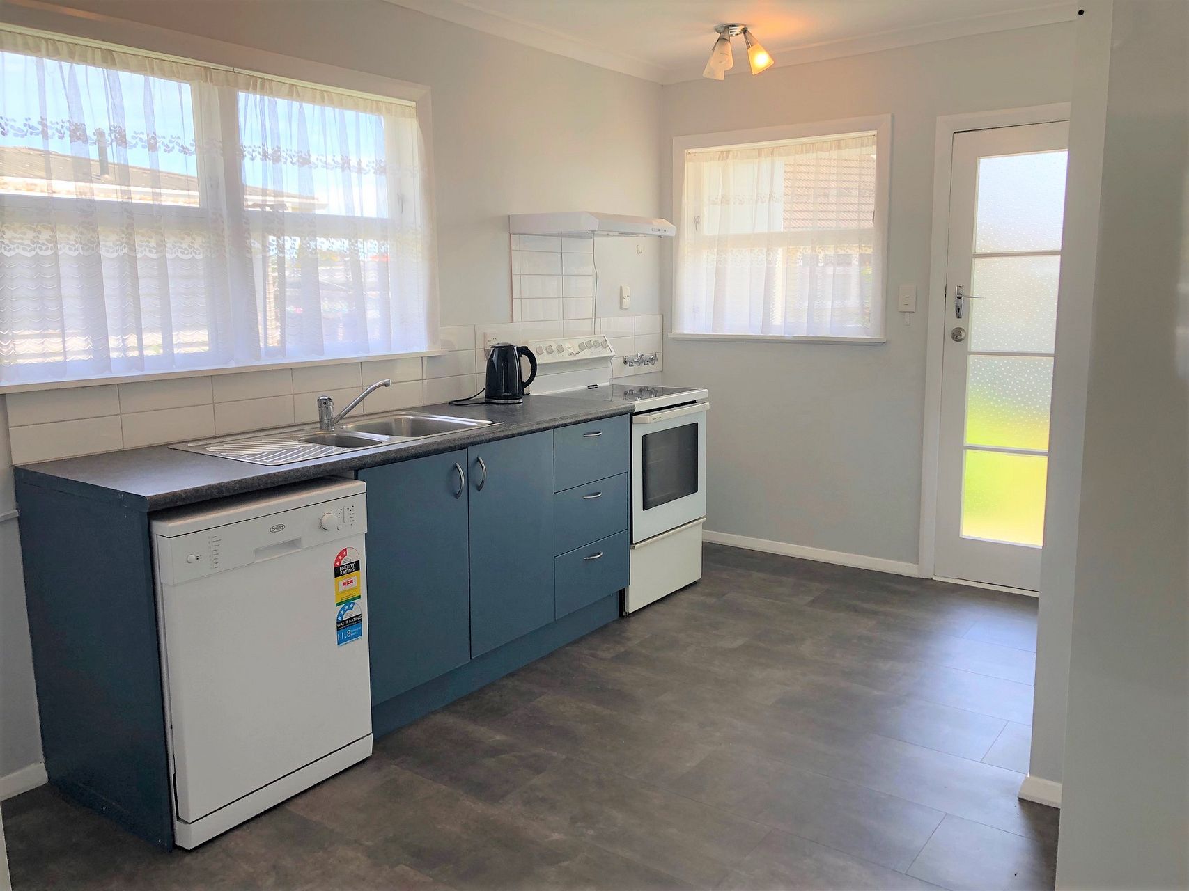 - a fresh kitchen with dishwasher and extractor fan