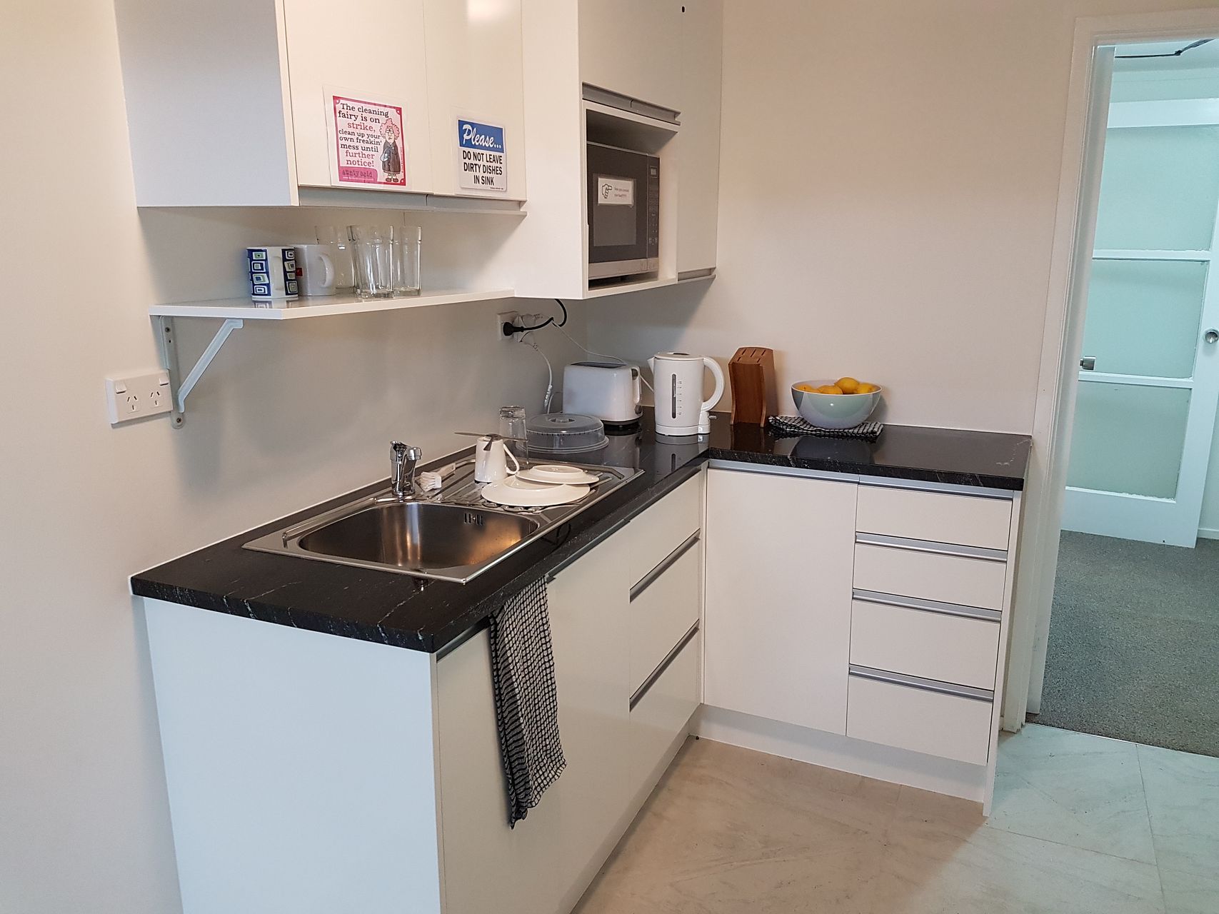 All rooms have large wardrobes, Quality furniture including queen bed, bedside tables and electric wall panel heaters.