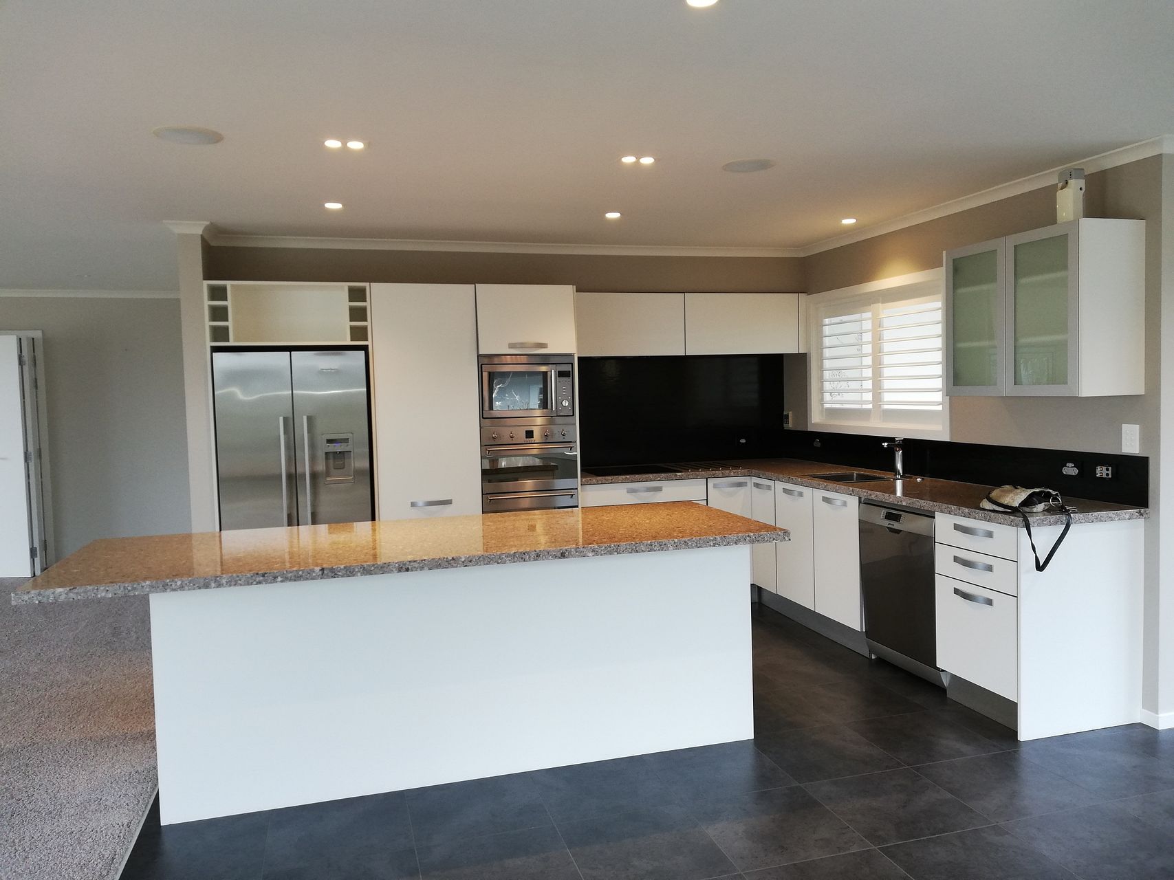 Amazing open plan kitchen with island marble bench will delight all who love to cook. Quality appliances included are microwave, stainless double fridge freezer with icemaker, dishwasher, insinkerator, wall oven and induction cooktop