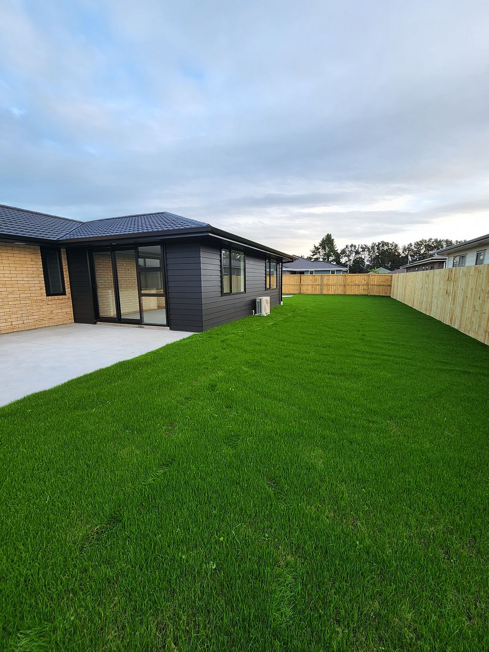 - Private and flat backyard with hydro seeded turf for low maintenance - perfect for backyard cricket