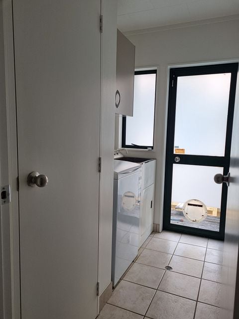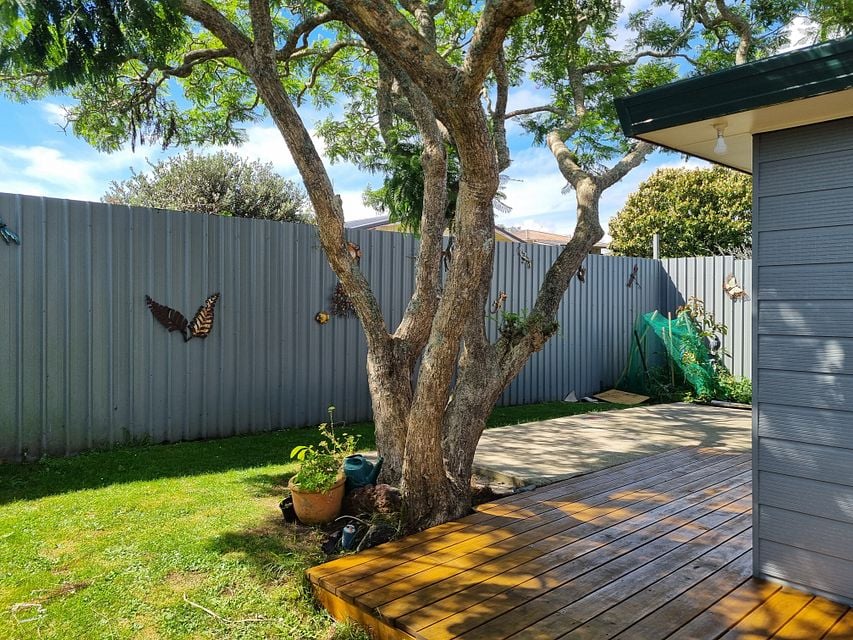 The home has three bedrooms, all with single wardrobes, and a family bathroom with both a shower and separate bath. The open plan kitchen, dining and lounge makes the space feel welcoming and practical, with a tiled dining area and dishwasher included to make life a bit easier. A heat pump is installed to help keep you warm in winter and cool in summer.