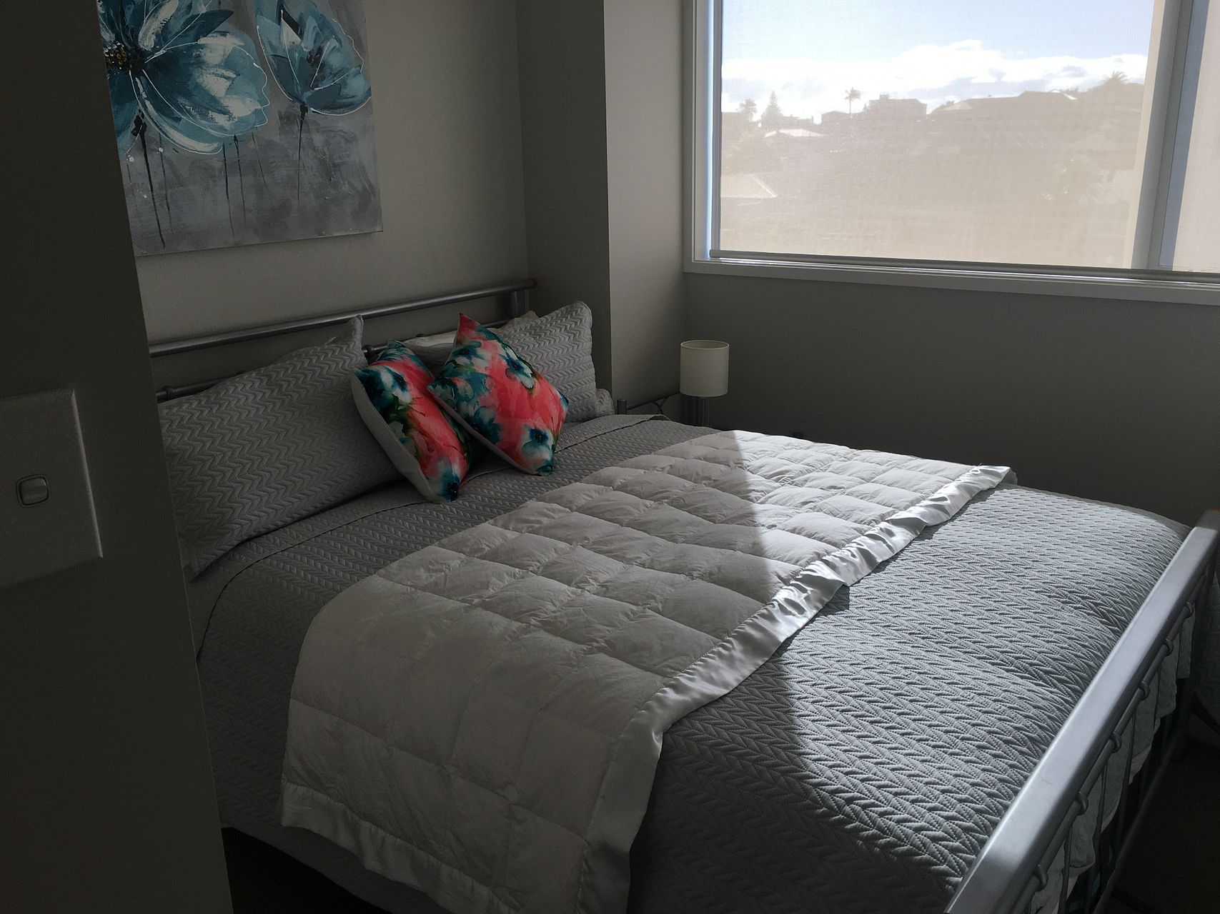 3 bedroom, 2 bathroom apartment, on the top floor with 2 covered carparks. Balcony with amazing views of Mount Maunganui, including a heatpump/air conditioning. Walking distance to town/restaurants/shops and the beach.