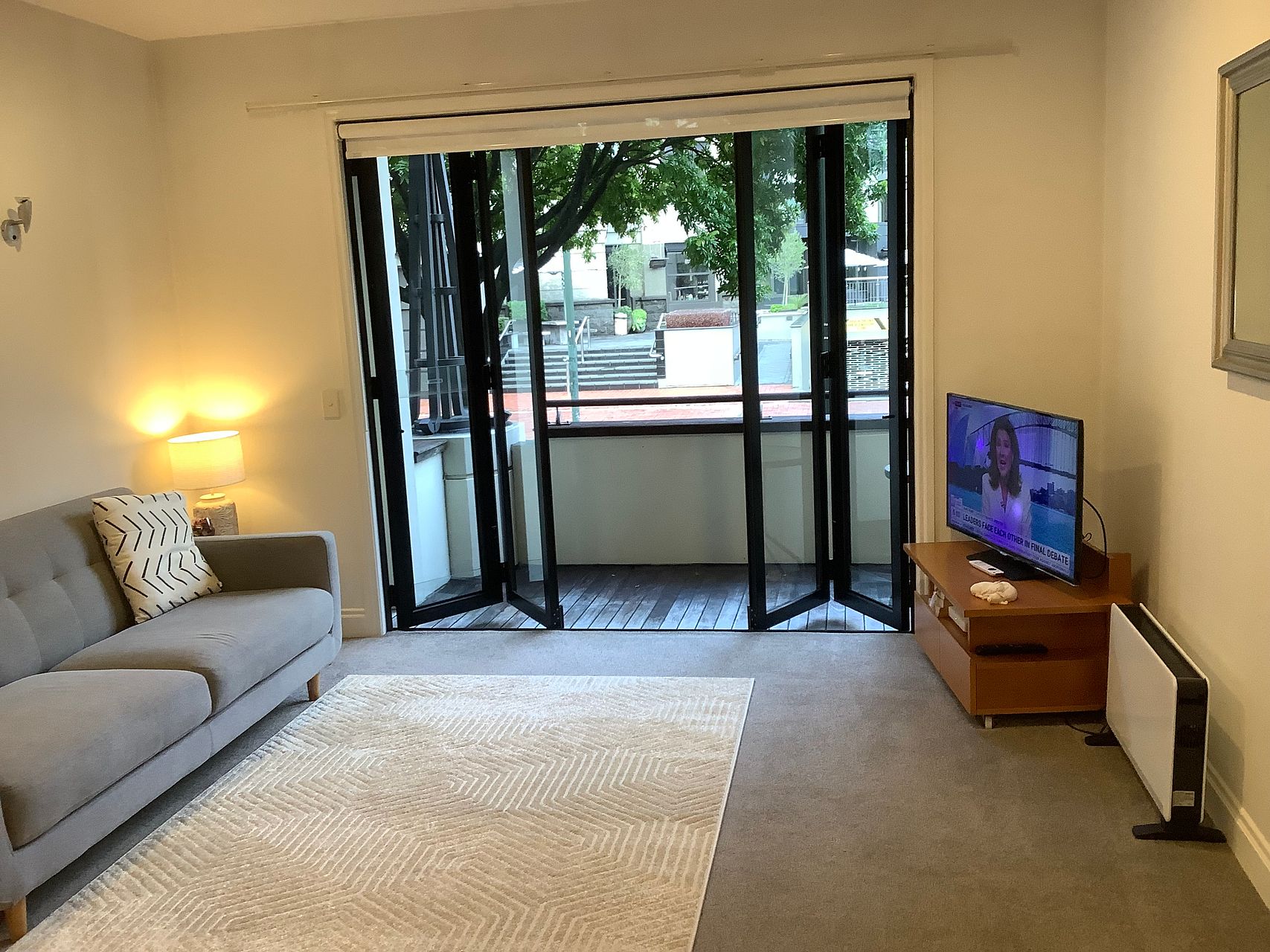 Fully furnished, all you need to bring is your clothes, food and your own bed linen. Washing machine, dryer, microwave, toaster, electric jug, fridge, queen bed, lounge suite, TV, heater and fan. Iron, hairdryer, ironing board, clothes rack, it’s all here along with pots, pans, crockery and cutlery.