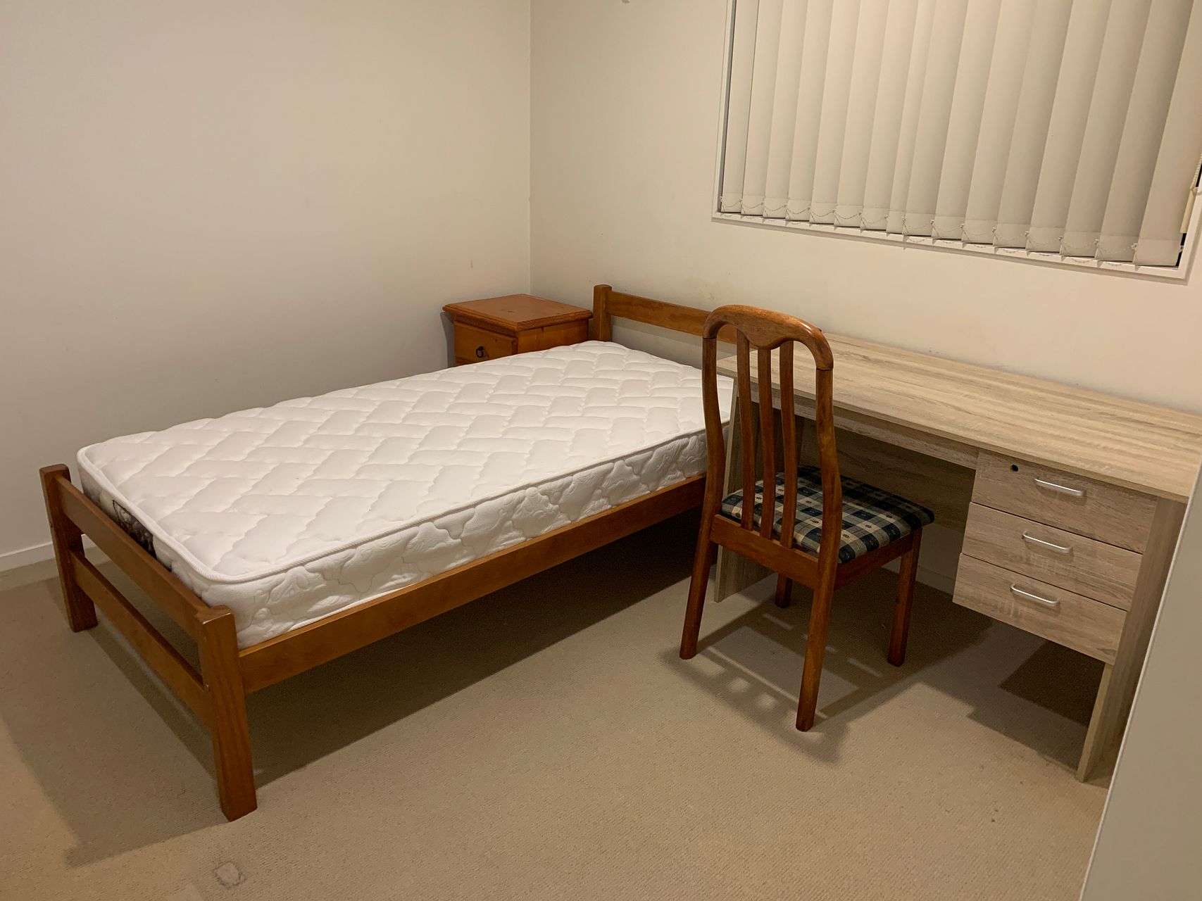 Includes whitewares and basic furniture.