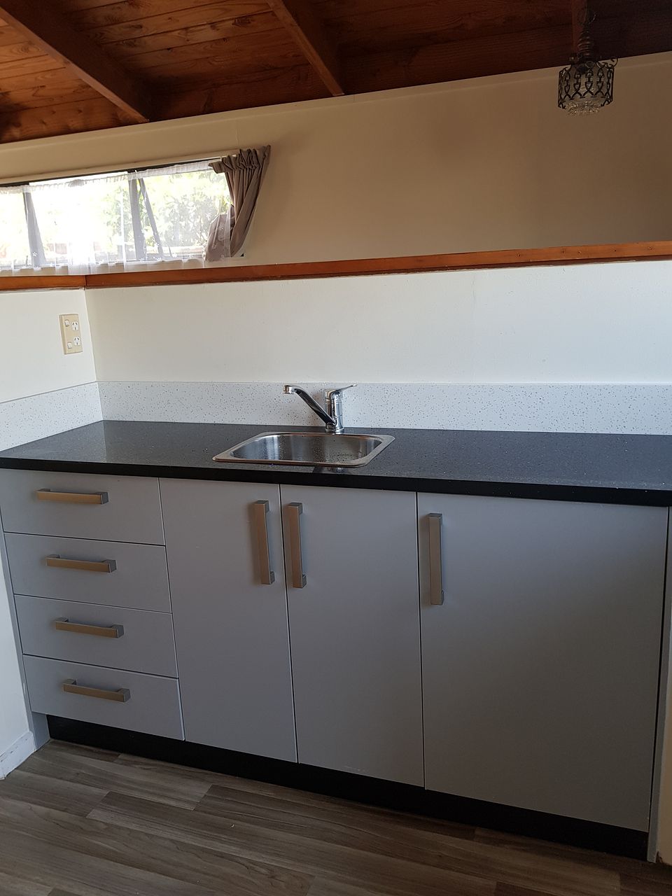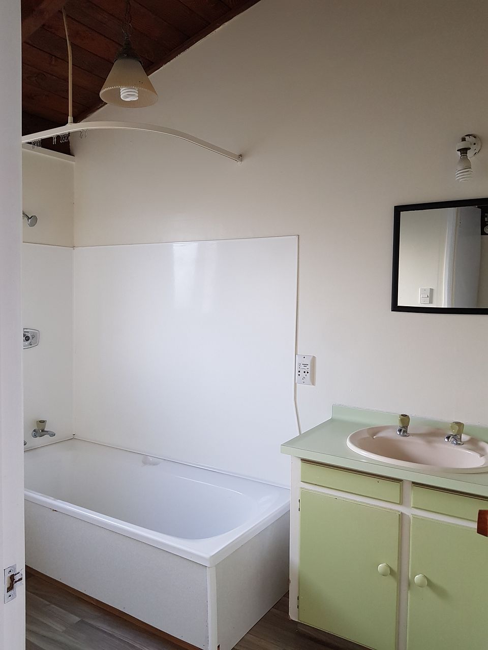 Bathroom features a shower over bath, small back yard with washing line. Lawns and grounds maintenance is included in the rent.