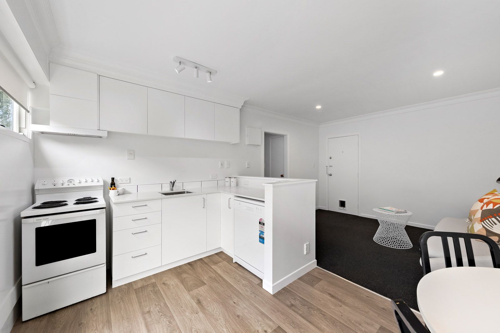 The unit has a well-sized master bedroom; separate living and full kitchen; full bathroom and includes washing machine taps if you want to bring your own, otherwise there is a shared laundry in the building. There is also fibre internet into the unit.
