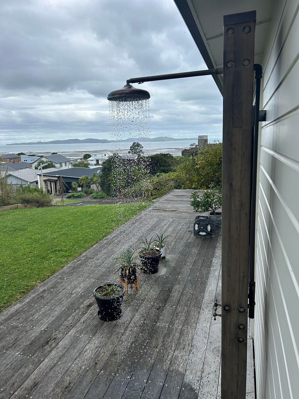 Walk off the front deck down through the garden to a public bush pathway that takes you to the beach. After a swim and play you can wash off in the outdoor shower.