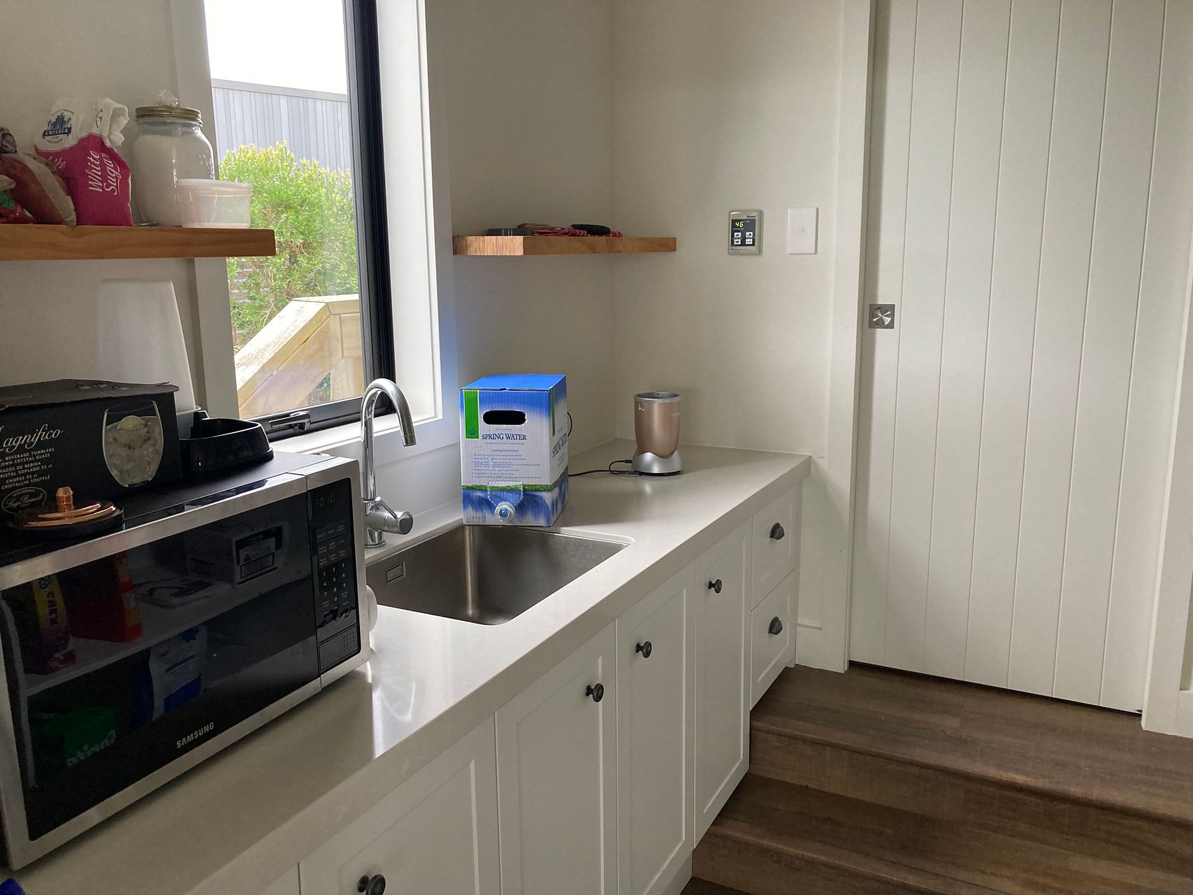 Walk through the generous entryway to be greeted by the open plan, dining, living and kitchen areas. The kitchen has generous storage and work space with a scullery that leads through to the garage making unloading the car a breeze.