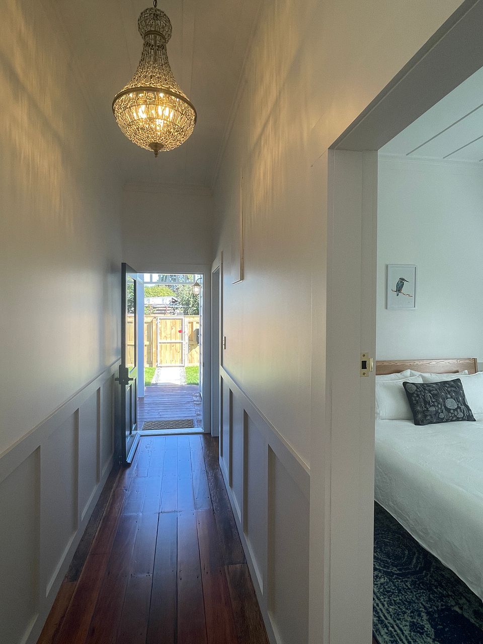 'The Snug', a beautifully recently fully renovated, healthy homes compliant, double glazed cottage, featuring original matai flooring and wood panelling throughout, alongside a contemporary kitchen and bathroom/laundry facilities. Open plan kitchen, dining and lounge.