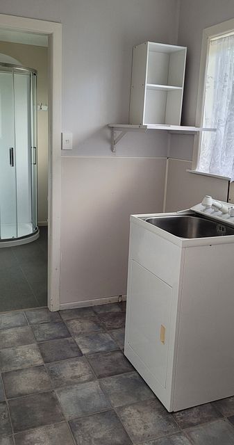 Bathroom can be accessed from the laundry or the main hallway.