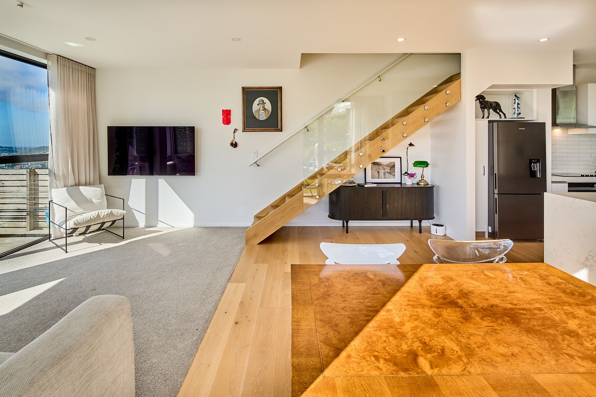 Open plan living and dining which flows on to deck area