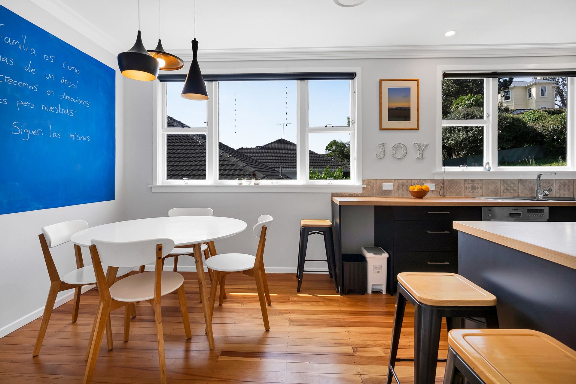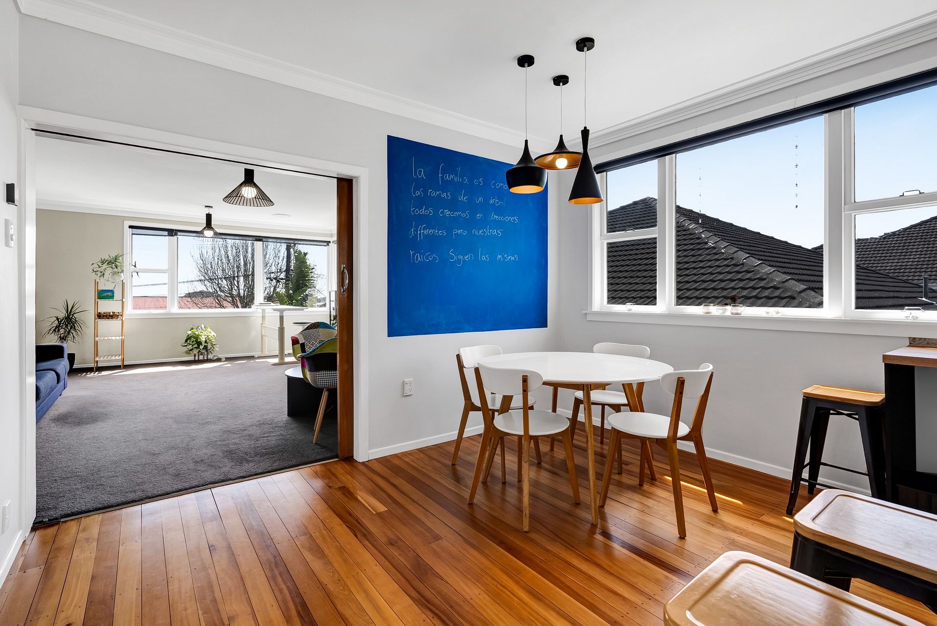 The house is very warm in the winter with an economical central heating system (ducted heat pump in the roof through to all rooms ) and a real flame gas fire in the living room which is lovely for atmosphere and cosy vibes in the winter months.