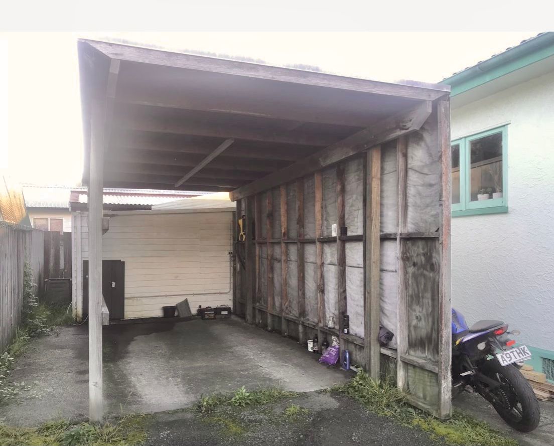 A carport and a secure shed for extra storage are located at the back of the house.