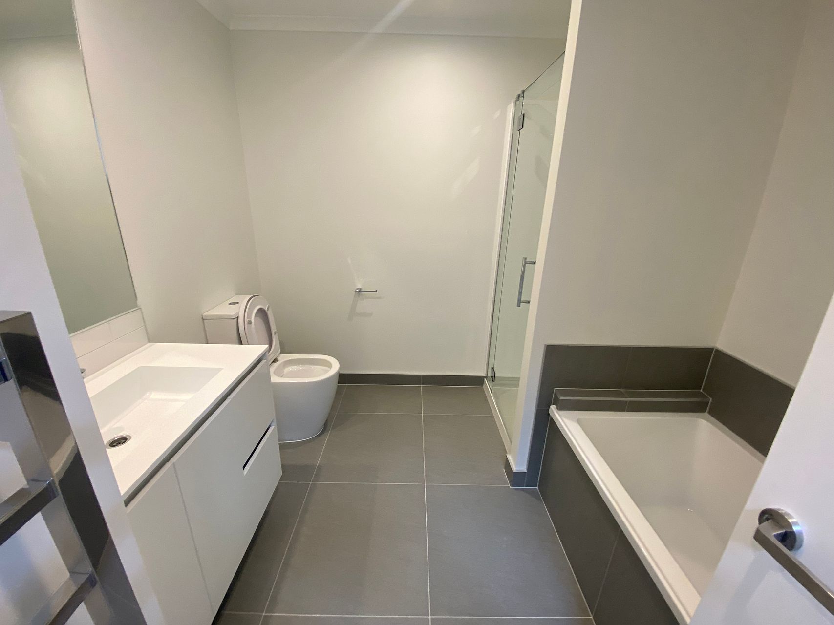 The first level has a master bedroom with luxurious ensuite, another large bedroom and third single bedroom. There is also a separate bathroom with a toilet, shower and bath.