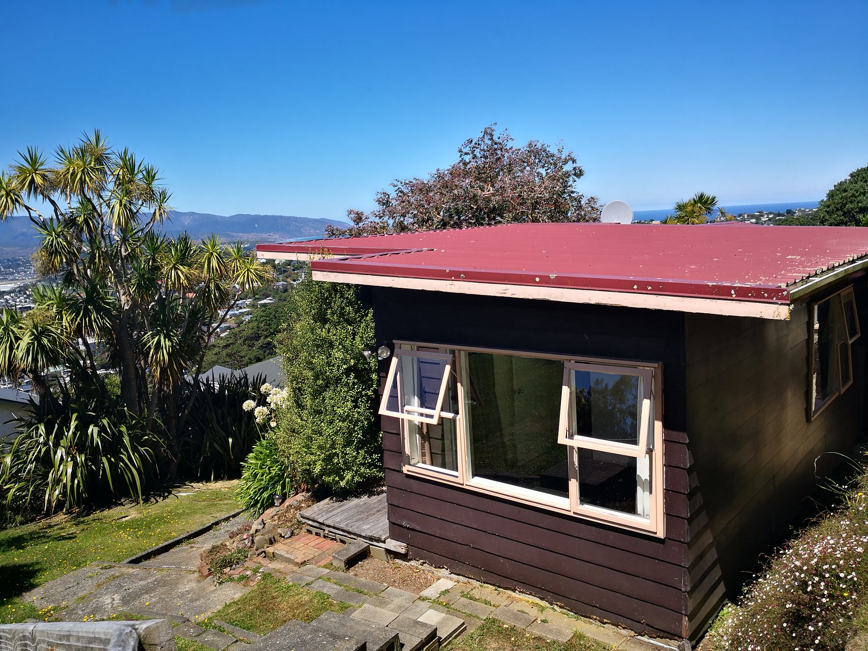 Tucked down a driveway makes this home secluded and sheltered from the prevailing northerlies. There's a garden area maintained for you and an impressive outlook to the east.