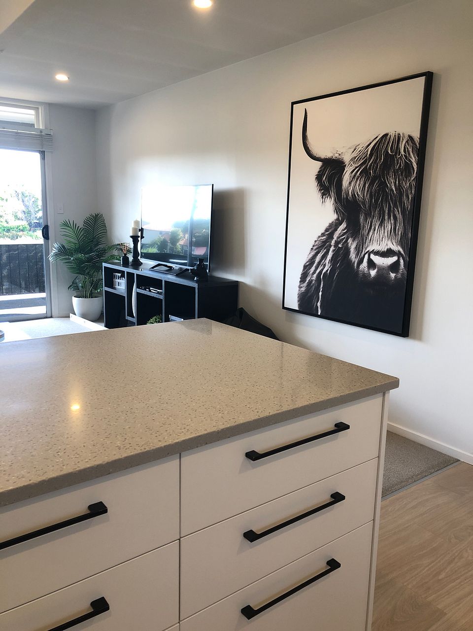 No. 8 is a first-floor private apartment with its own entrance, featuring two comfortable bedrooms (one queen bed, one double bed), a full modern kitchen, internal laundry, spacious lounge, private off-street parking (single garage and parking space) and a sunny balcony.