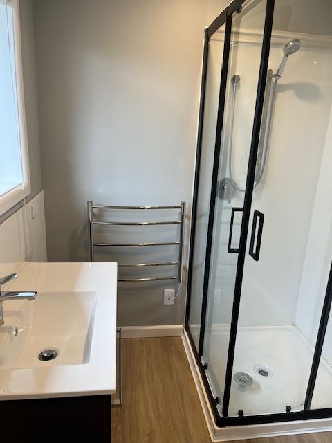 NEW BATHROOM WITH SHOWER, VANITY AND TOILET IN BATHROOM