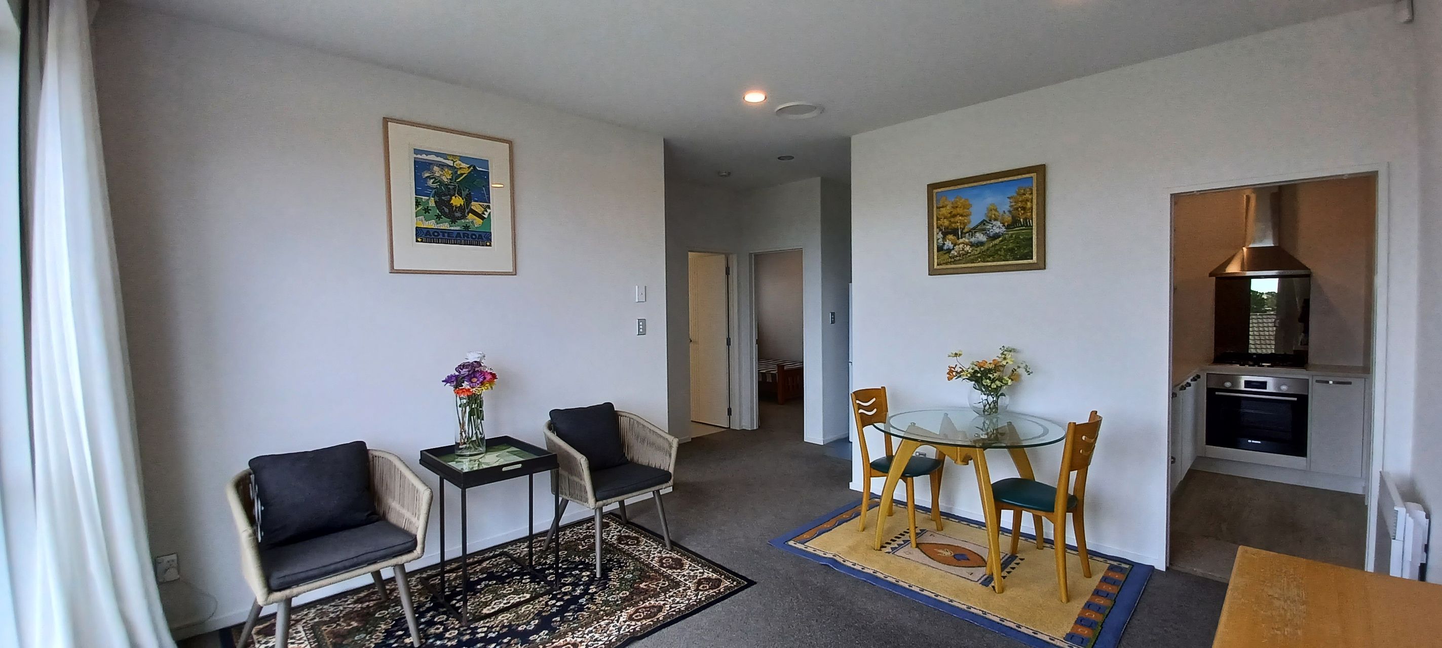 Chic flat with sea and hill views. 2 beds, 1 living, gas cooking and Bosch oven. Compliant with healthy home code.