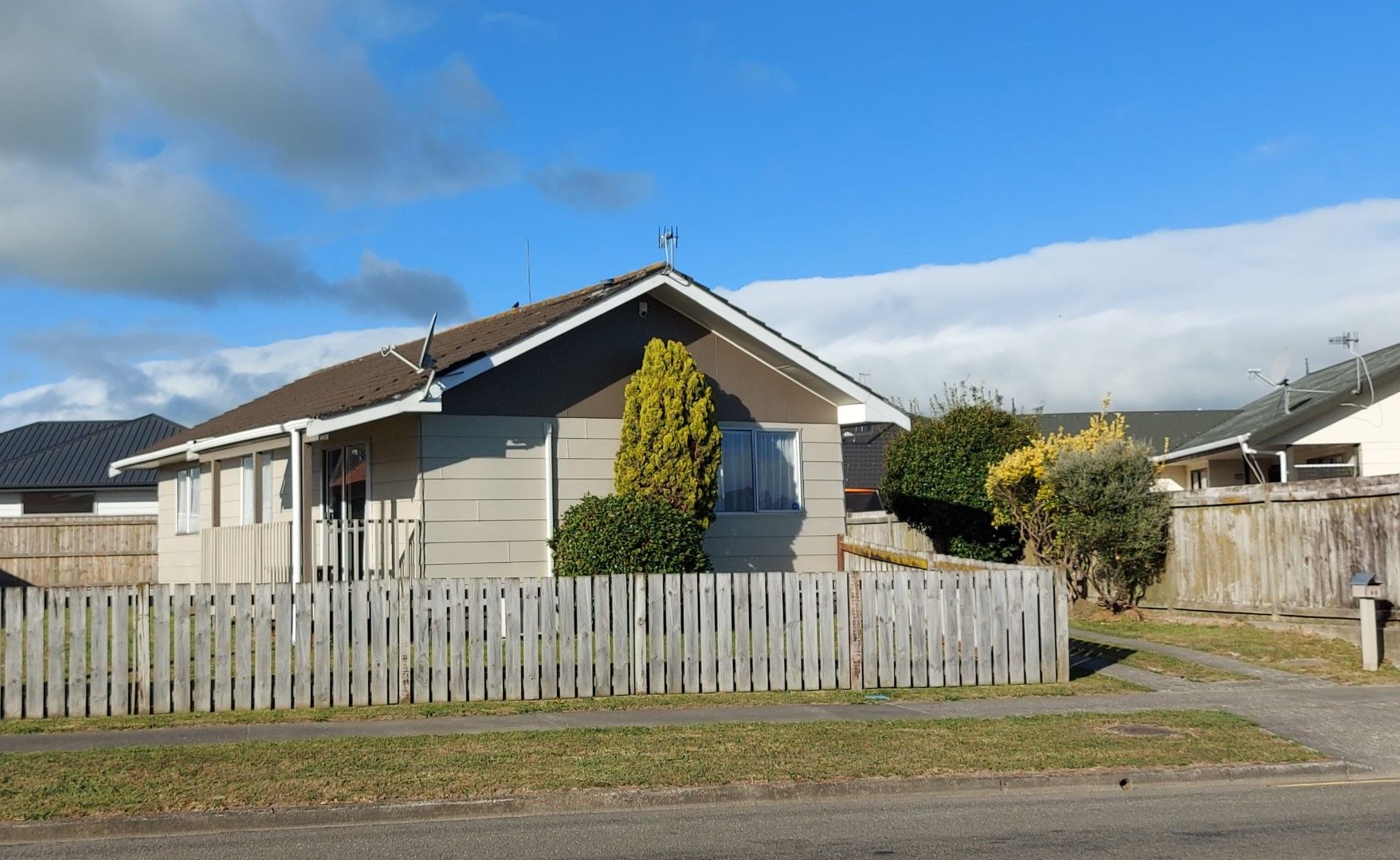 Real sun trap with full toddler proof fencing on spacious section with minimal gardens and lovely quiet neighbours. Fully insulated (top and bottom) and heat pump make it cool in summer and cosy warm in winter. Shower over bath, extractor fan and heated towel rail complete the bathroom. Alarm, sky dish, fibre internet and TV aerial ready to go. Recent internal repaint throughout in modern colours.