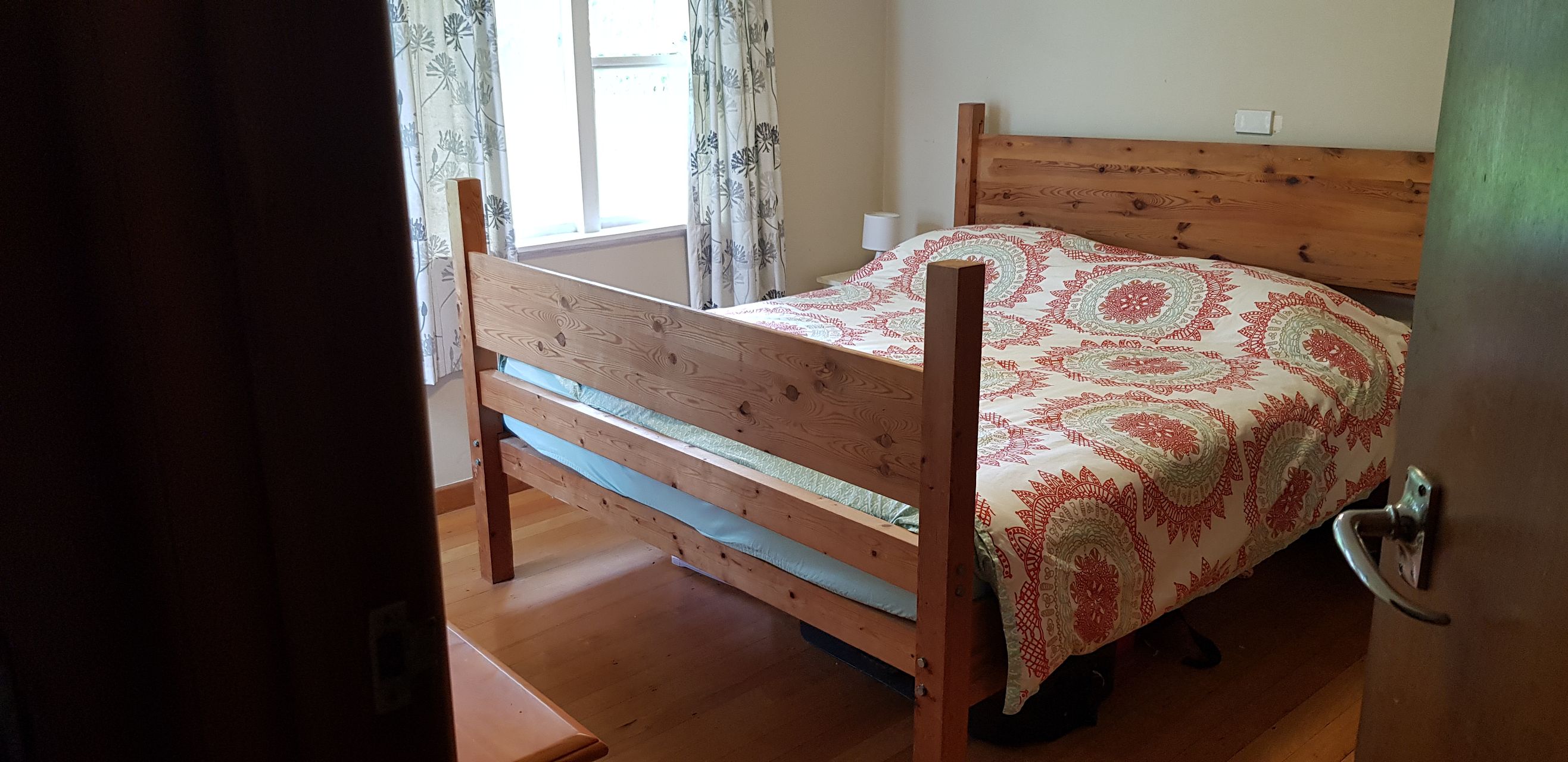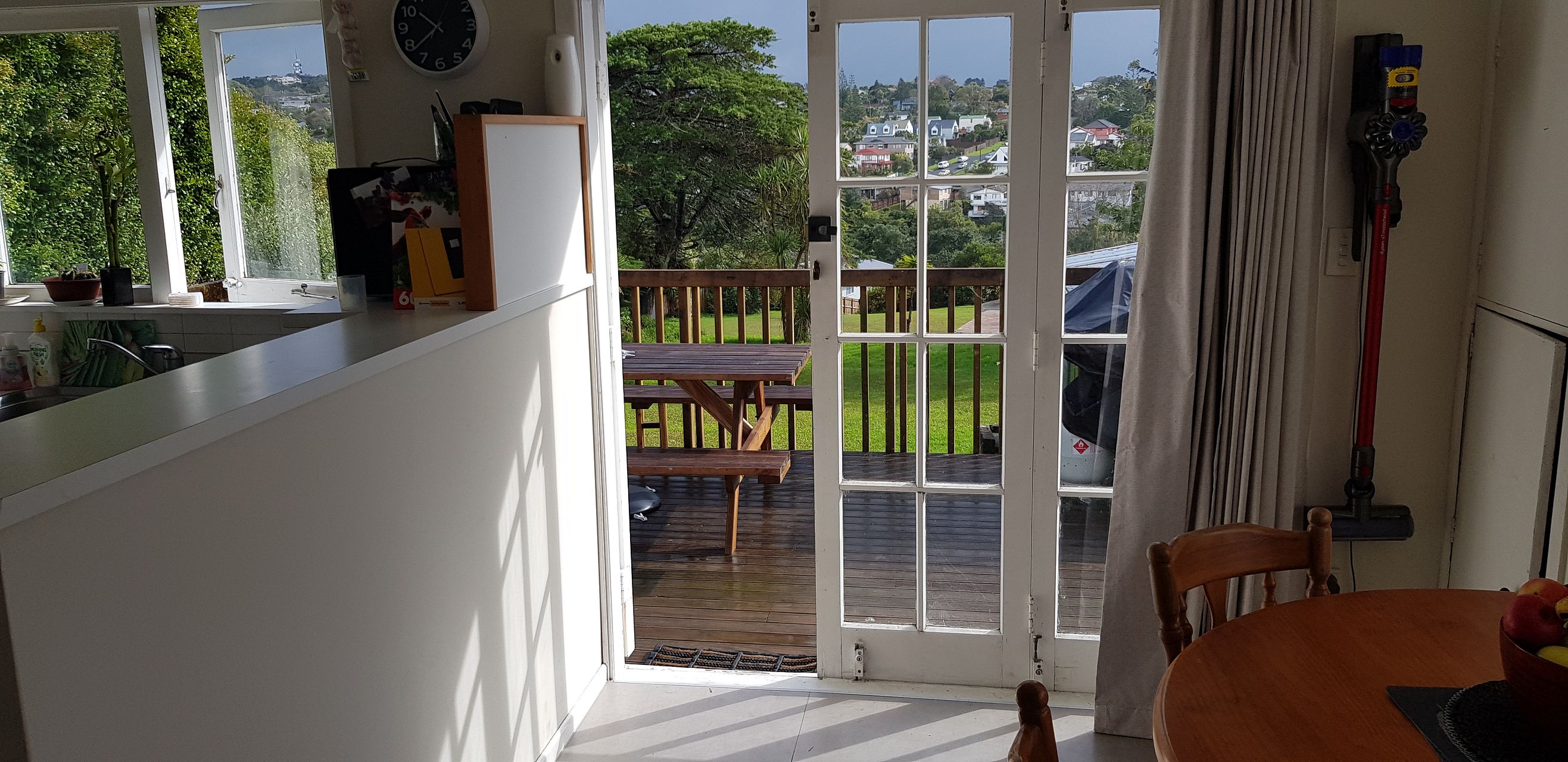 Nice and solid rimu bungalow with wooden floors, north facing deck and back yard, recently painted.