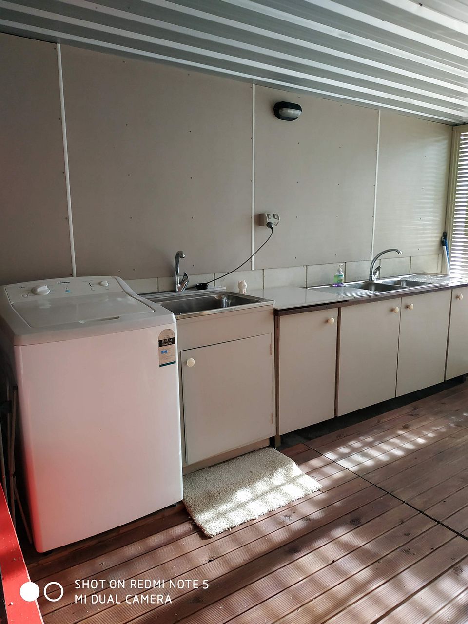 Furnishings: Bed, Fridge & Freezer, Microwave, washing machine, twin element cook top, mini oven, some pots & pans, table & chairs plus 2 sofa chairs,coffee table