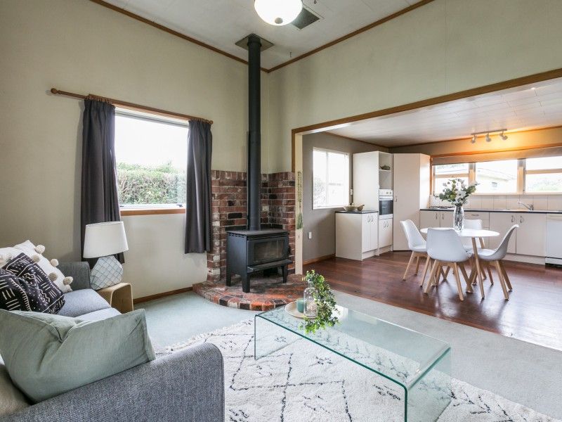 Open plan kitchen / lounge with efficient woodfire, and a new heatpump being installed shortly.