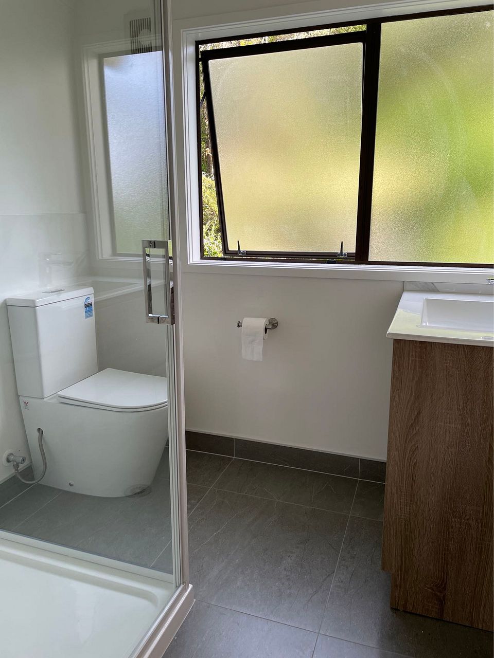 Two full bathrooms, both brand new and tiled.