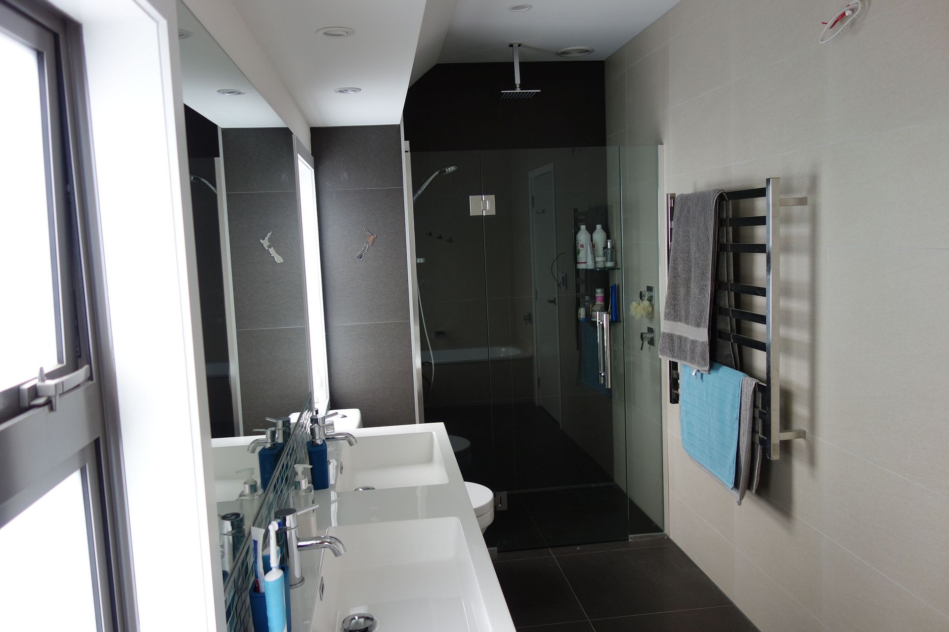 The 3 upstairs bedrooms are light and sunny: the generous master has walk-through wardrobe, and the other two have double wardrobes. The luxurious fully-tiled bathroom has a rain-head shower and bath.