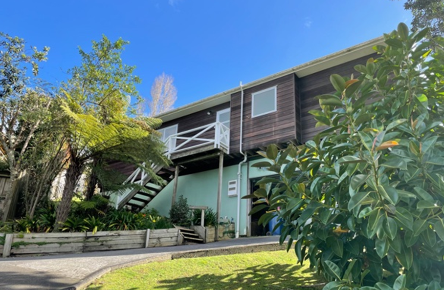 This 3 bedroom home has one master bedroom with walk-in wardrobe and ensuite. One double bedroom and a single room. The living area includes open plan lounge, dining area and kitchen with the lounge flowing out to a deck and small garden area. The laundry area adjoins the front entrance area. Large heat pump in the living area. Haier dishwasher supplied. There is a 2 car garage under the house. Access to the house is via a long, steep drive and there are stairs to access the house. Cats ok.