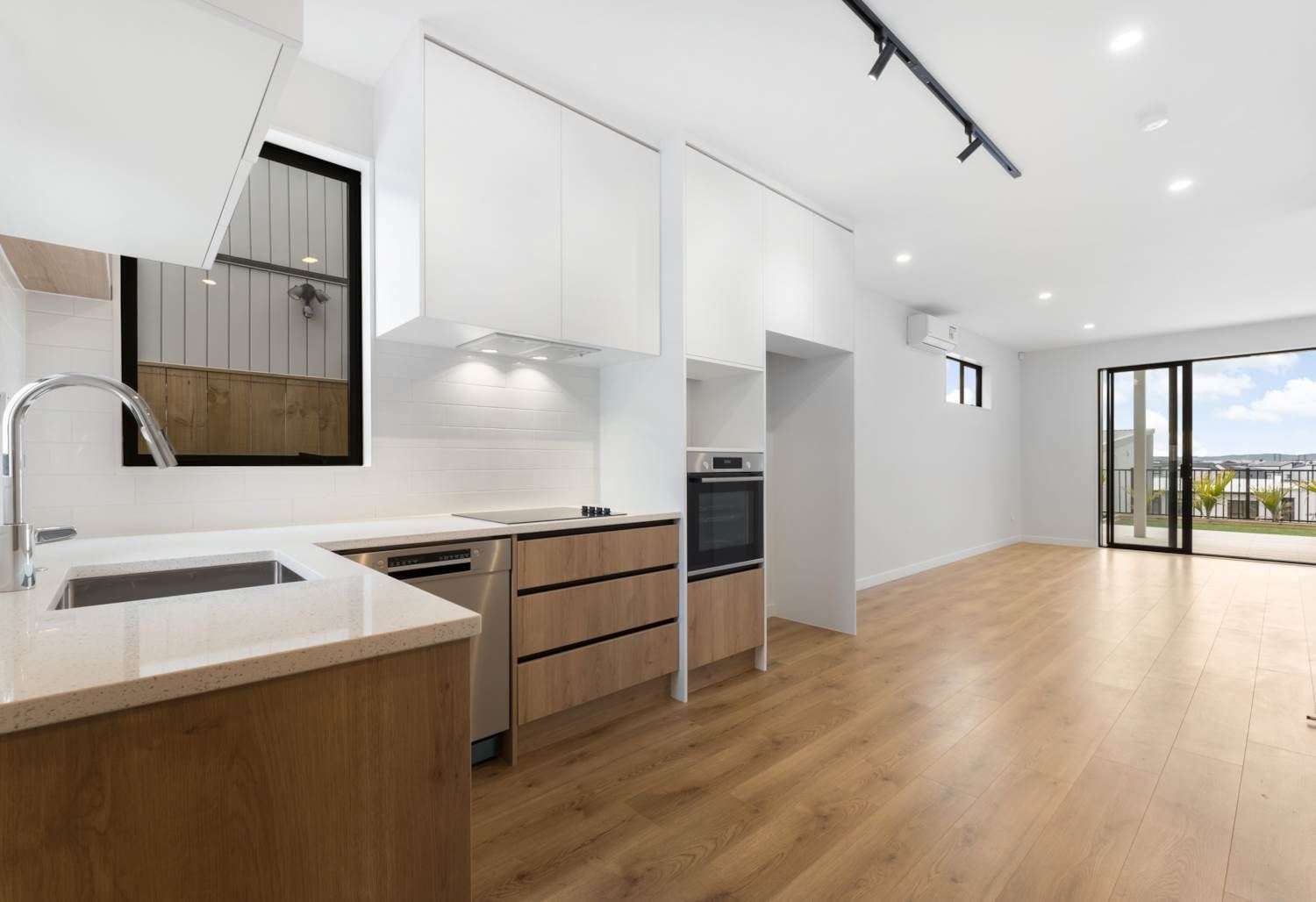 Open-plan kitchen, dining, and living area with great natural light