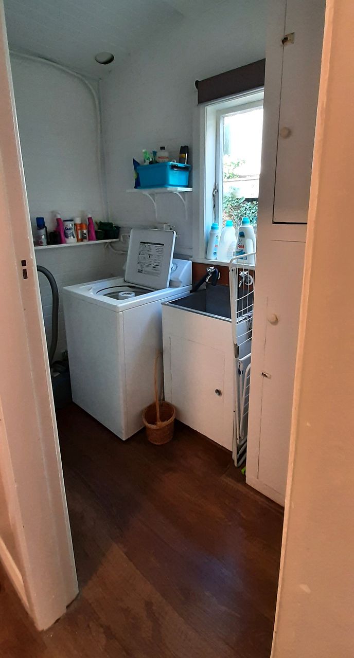The large kitchen has an electric oven and room for a dining table. The bathroom is modern with a shower (no bath) and there is a separate laundry area. A gas infinity system means unlimited hot water.